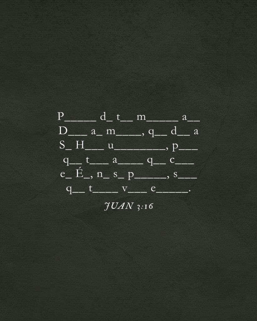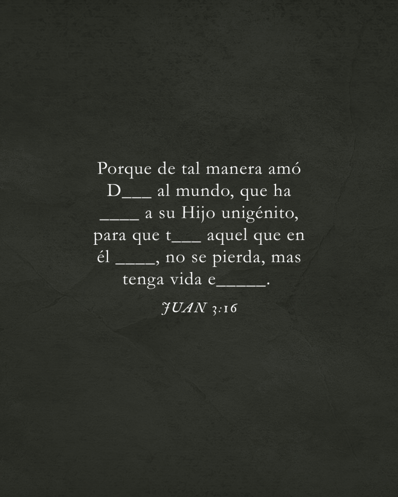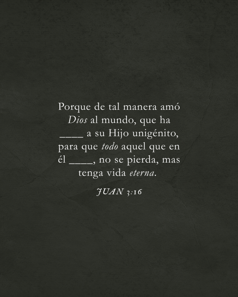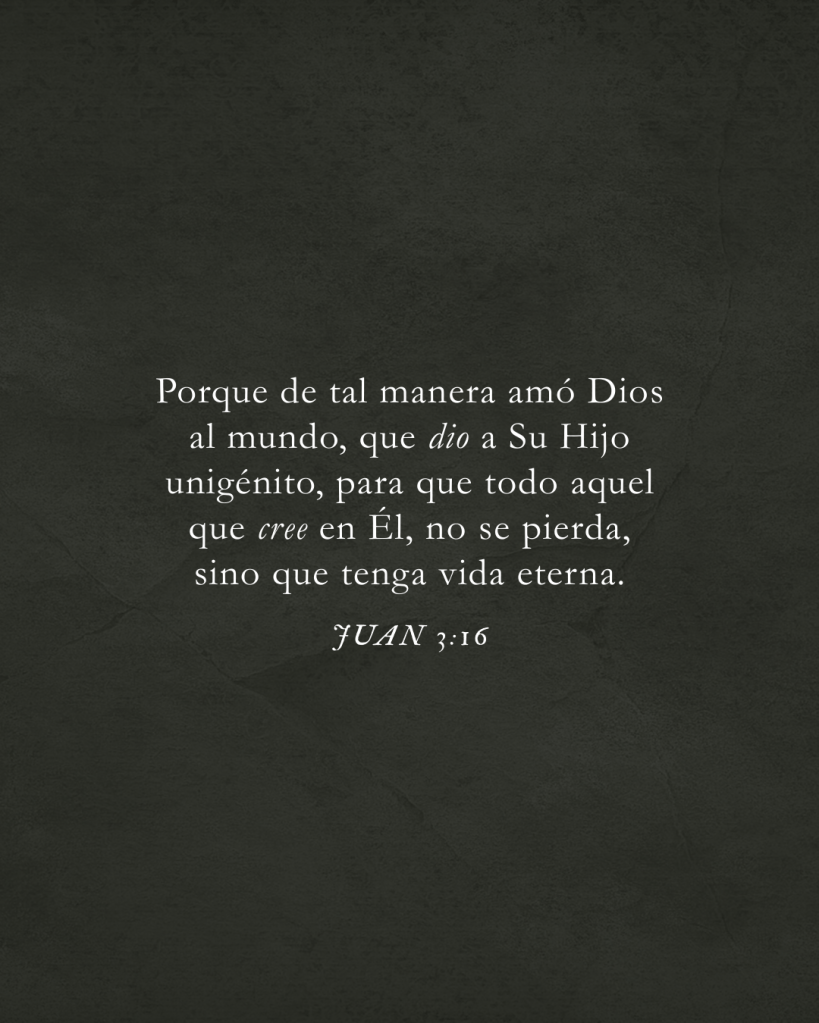 John 3:16 For God so loved the world that he gave his one and only Son, that whoever believes in him shall not perish but have eternal life.