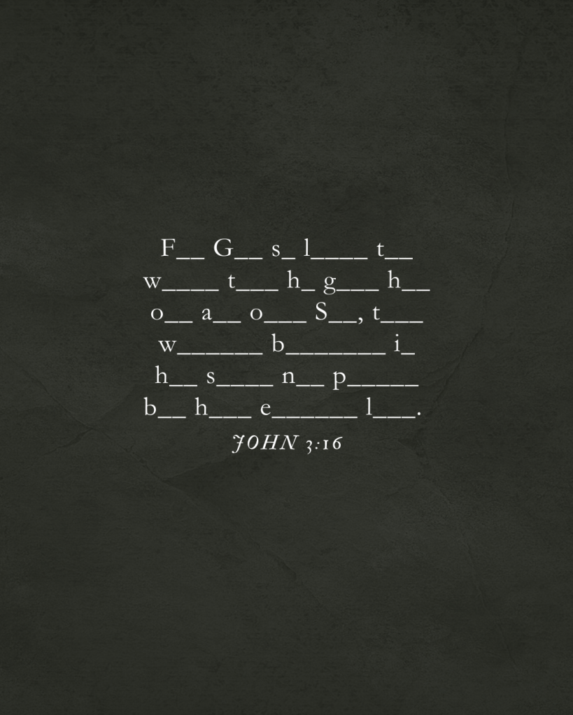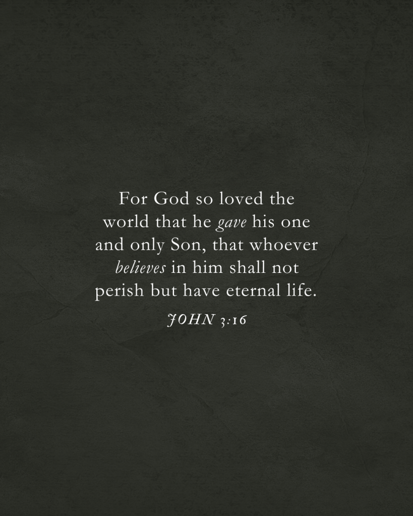 جون 3:16 لأنه هكذا أحب الله العالم حتى بذل ابنه الوحيد، لكي لا يهلك كل من يؤمن به بل تكون له