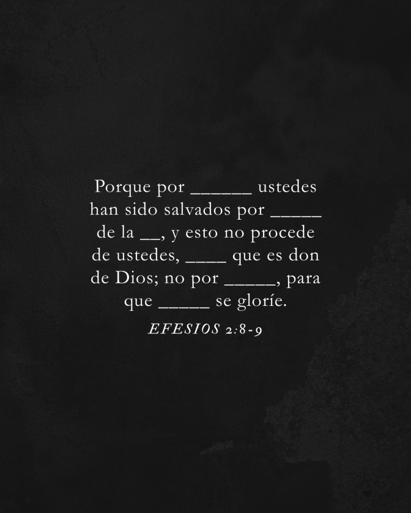 فَبِالنِّعمَةِ أنْتُمْ مُخَلَّصُونَ، لِأنَّكُمْ آمَنتُمْ، وَهَذَا كُلُّهُ لَا يَعْتَمِدُ عَلَيْكُمْ، بَلْ هُوَ عَطيَّةٌ مِنَ اللهِ. لَيْسَ مُقَابِلَ الأعْمَالِ لِئَلَّا يَكُونَ هُنَاكَ مَجَالٌ لِلَافتِخَارِ. ﺃﻓﺴﺲ 2:8-9