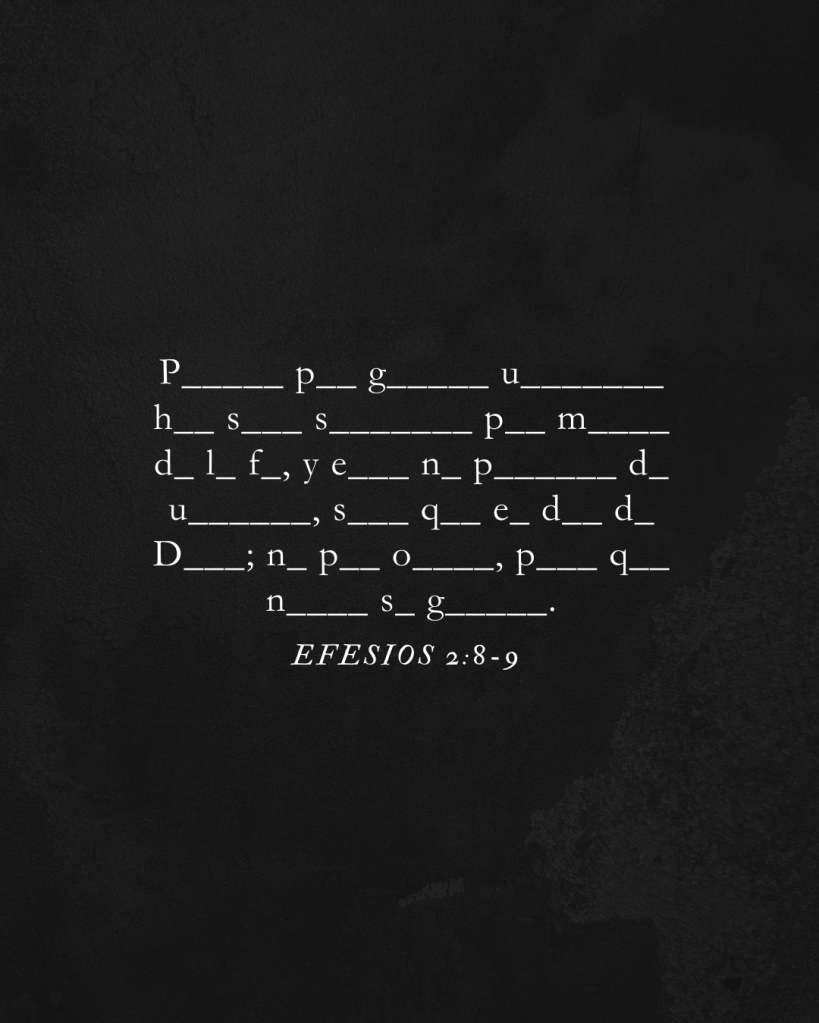 Éphésiens 2:8-9 – Car c’est par grâce que vous êtes sauvés, par le moyen de la foi. Cela ne vient pas de vous, c’est un don de Dieu ; ce n’est pas le fruit d’œuvres que vous auriez accomplies. Personne n’a donc de raison de se vanter.