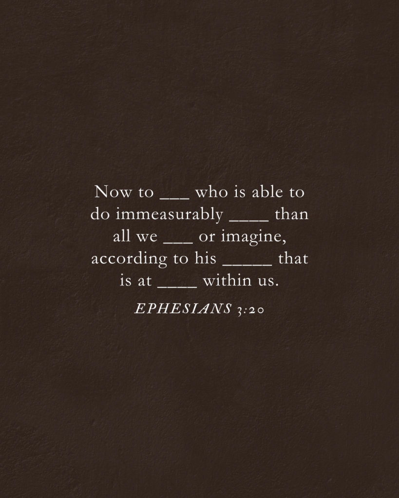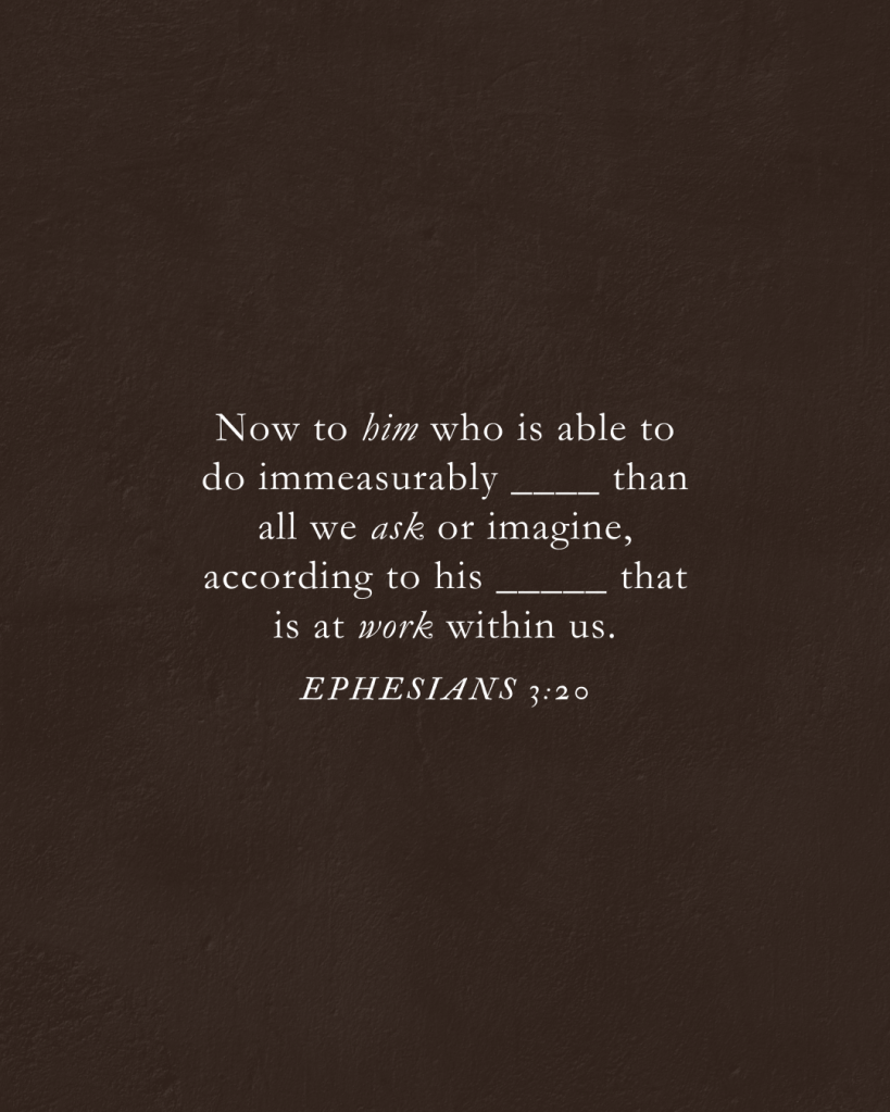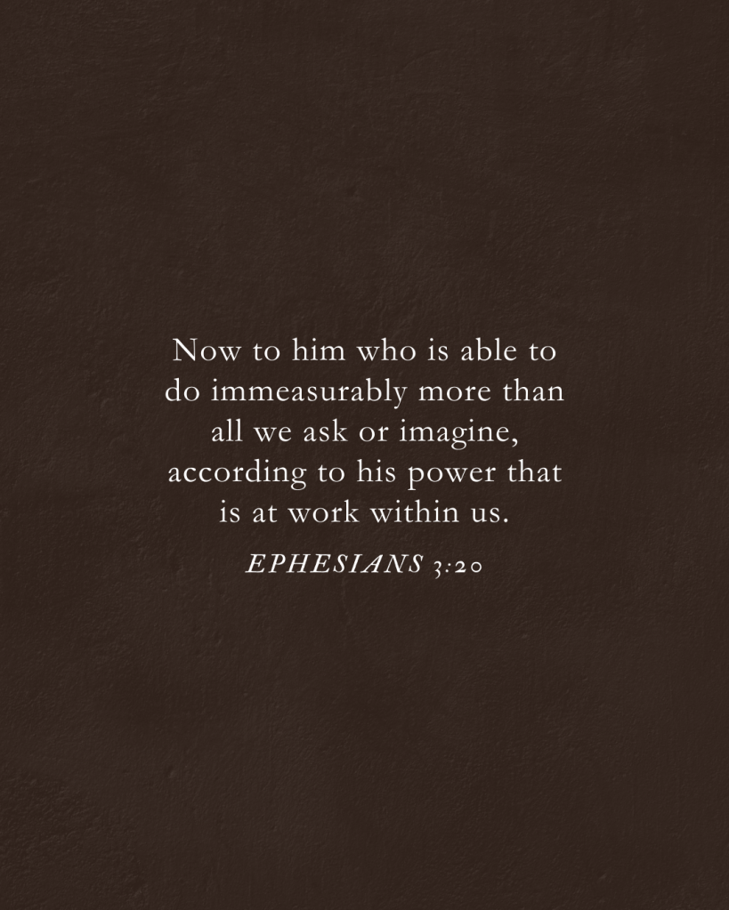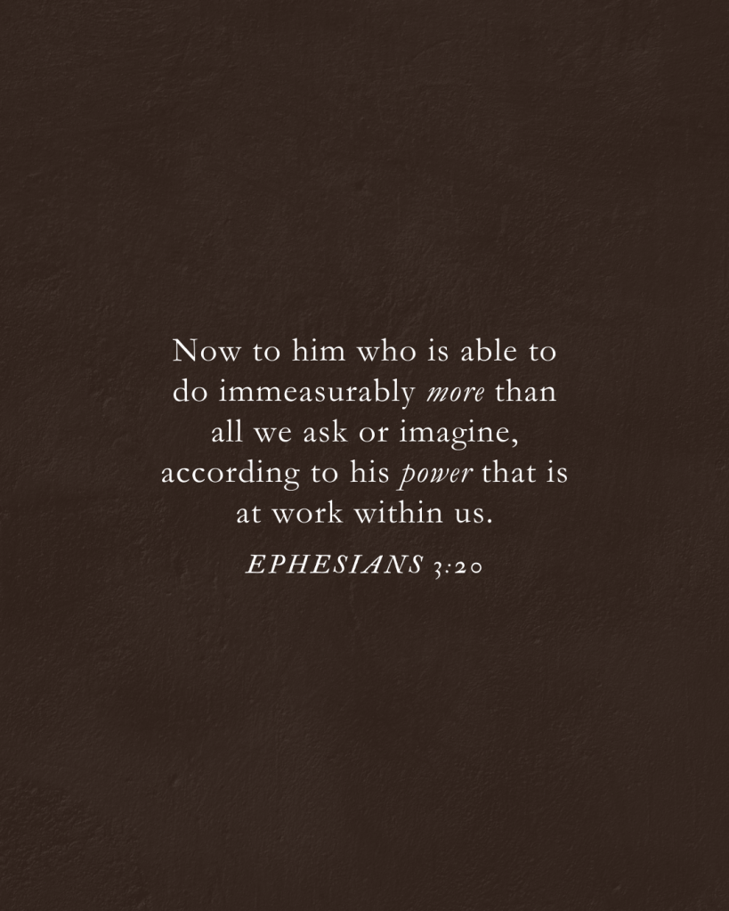 وَاللهُ قَادِرٌ أنْ يَفْعَلَ أكْثَرَ جِدًّا مِمَّا نَطلُبُ أوْ نَتَخَيَّلُ، حَسَبَ شِدَّةِ قُوَّتِهِ العَامِلَةِ فِينَا.