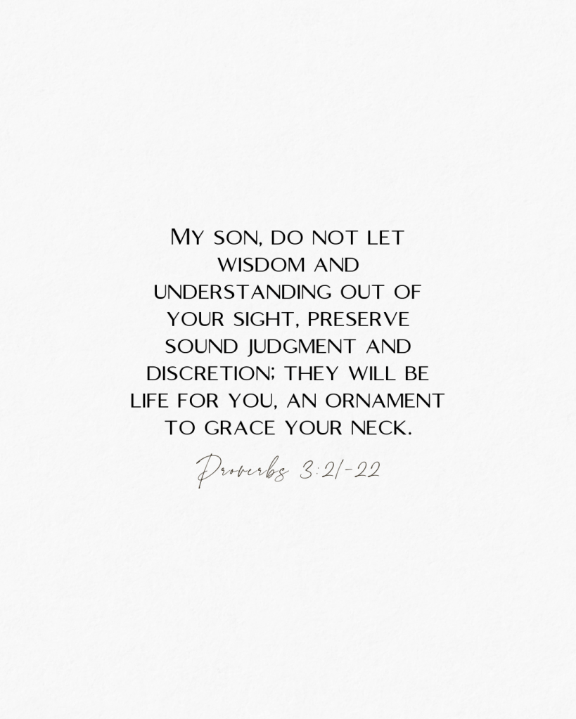 “My son” or “my daughter” should incline our attention to something of importance. Although Solomon spoke the words to his son, we are invited to read these words as though the Father is speaking to us. Wisdom should not be seen as a trifle or something that can easily be attained and just as easily discarded. What is wise should be in our sights at all times and treasured in our hearts.