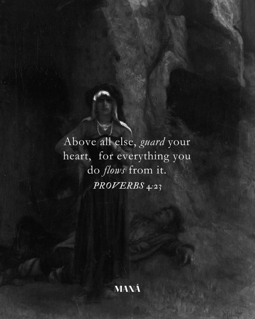 The guarding of the heart is twofold. We should protect the truth and precepts of God’s word that have been laid on our hearts and indwelled upon our spirits, protecting them from attacks of temptation and lies. The second is to guard our hearts, like a shield, from the things trying to pervade and dominate us.