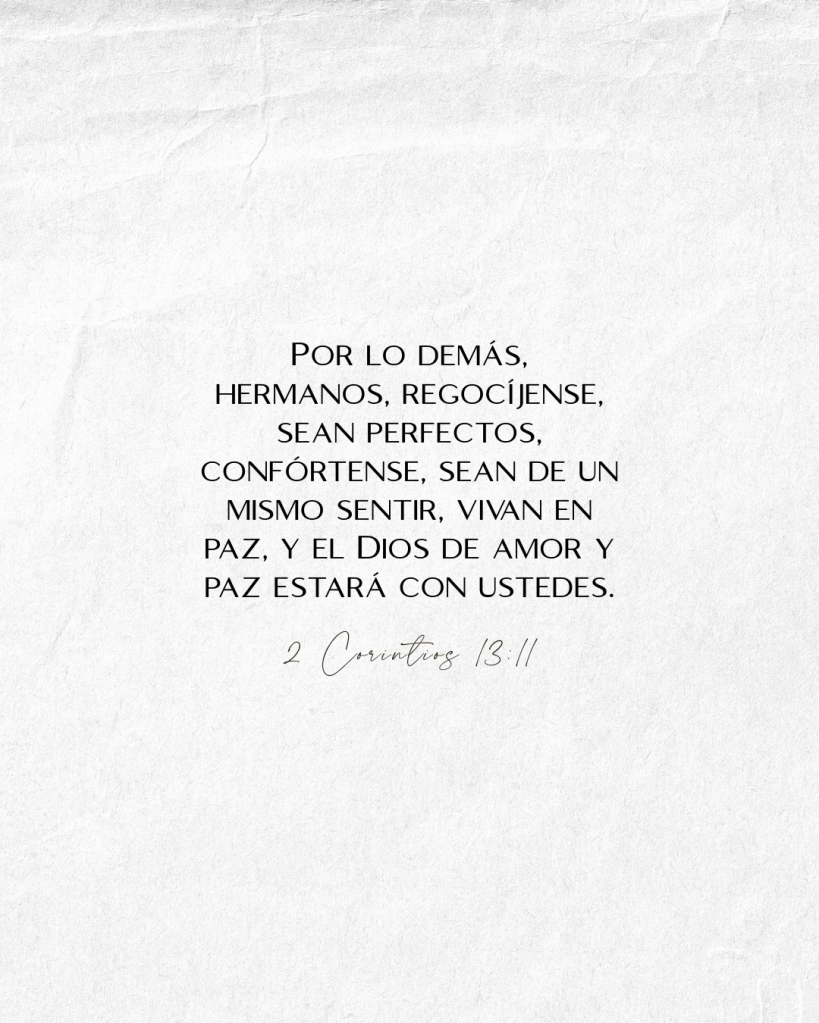 8 Por lo demás, hermanos, todo lo que es verdadero, todo lo digno, todo lo justo, todo lo puro, todo lo amable, todo lo honorable, si hay alguna virtud o algo que merece elogio, en esto mediten. 9 Lo que también han aprendido y recibido y oído y visto en mí, esto practiquen, y el Dios de paz estará con ustedes.