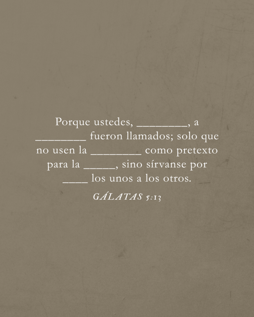 Porque ustedes, hermanos, a libertad fueron llamados; solo que no usen la libertad como pretexto para la carne, sino sírvanse por amor los unos a los otros.