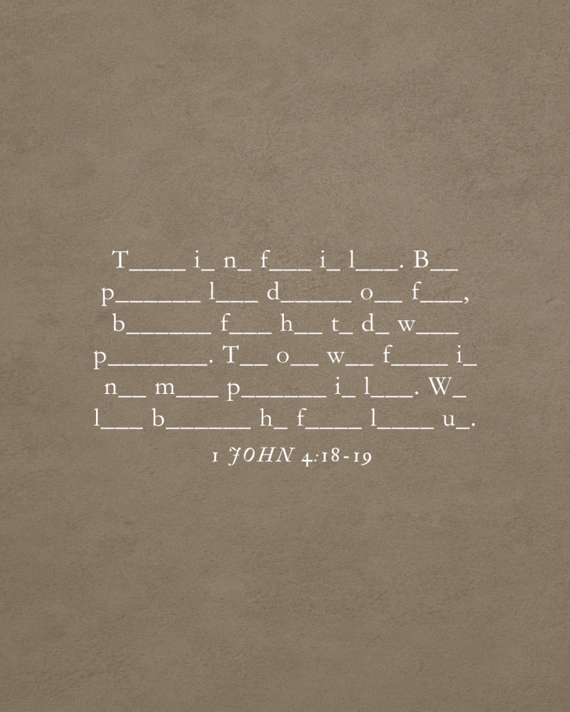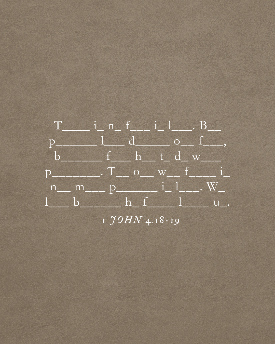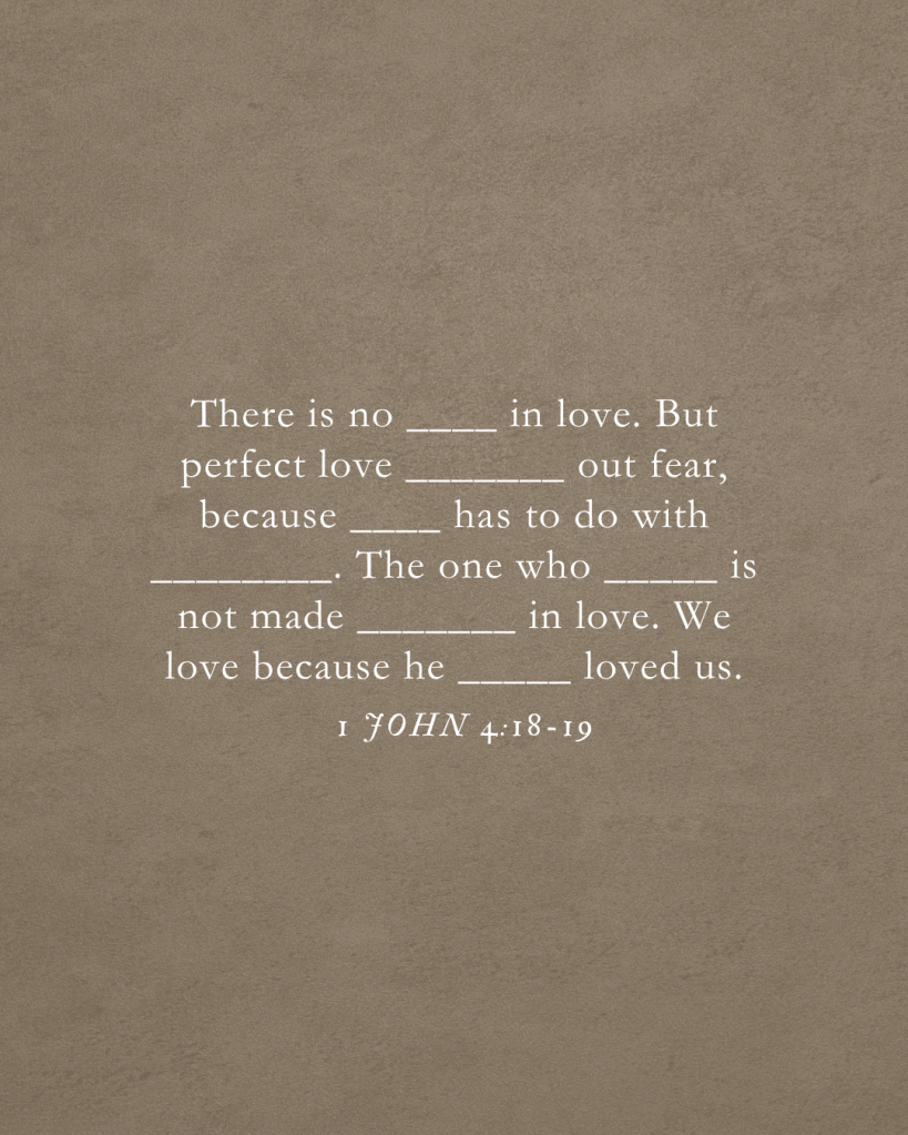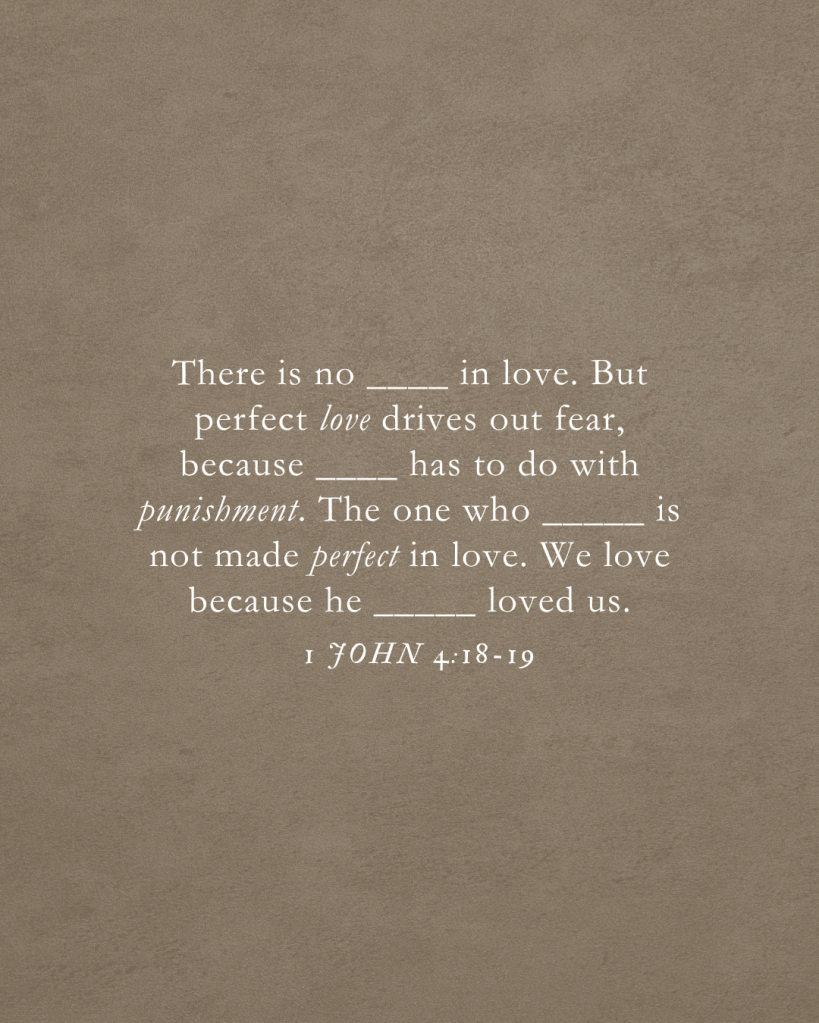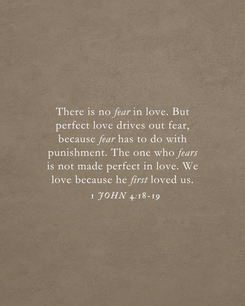 En el amor no hay temor, sino que el perfecto amor echa fuera el temor, porque el temor involucra castigo, y el que teme no es hecho perfecto en el amor. Nosotros amamos porque Él nos amó primero.