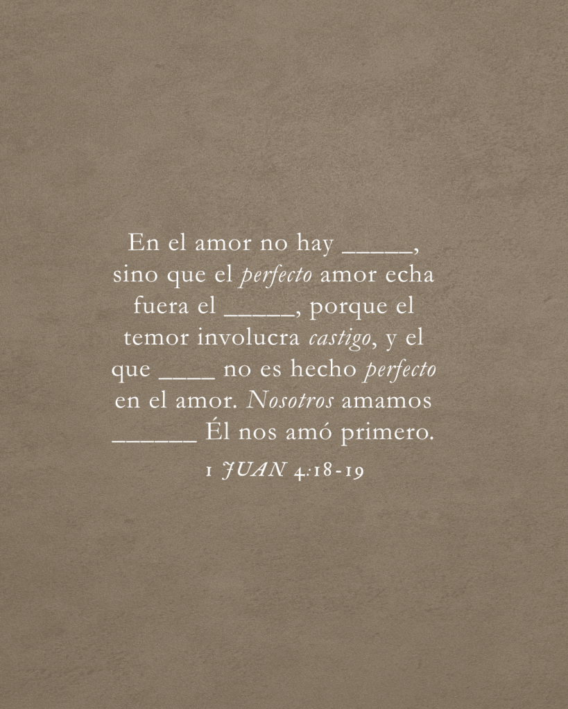 There is no fear in love. But perfect love drives out fear, because fear has to do with punishment. The one who fears is not made perfect in love.