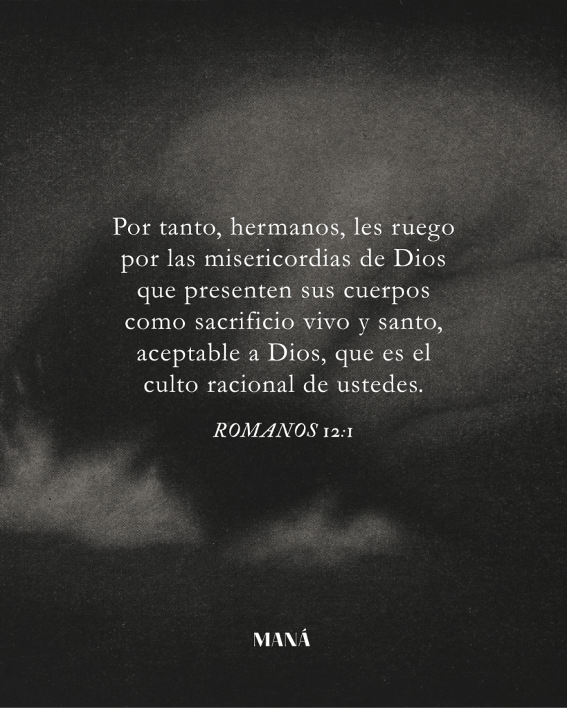 Por tanto, hermanos, les ruego por las misericordias de Dios que presenten sus cuerpos como sacrificio vivo y santo, aceptable a Dios, que es el culto racional de ustedes.