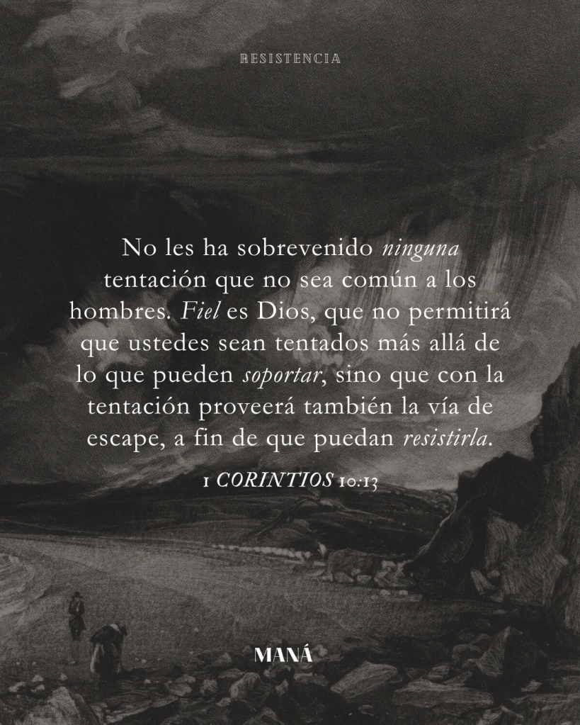 Estas cosas les sucedieron como ejemplo, y fueron escritas como enseñanza para nosotros, para quienes ha llegado el fin de los siglos. Por tanto, el que cree que está firme, tenga cuidado, no sea que caiga. No les ha sobrevenido ninguna tentación que no sea común a los hombres. Fiel es Dios, que no permitirá que ustedes sean tentados más allá de lo que pueden soportar, sino que con la tentación proveerá también la vía de escape, a fin de que puedan resistirla.