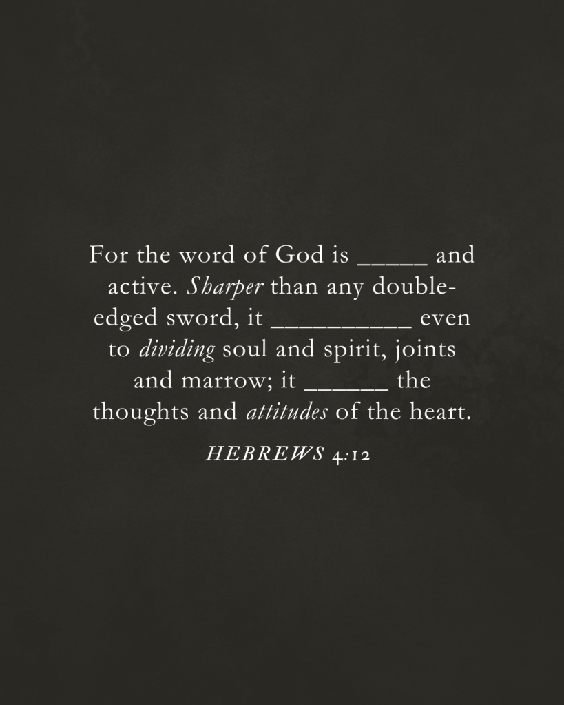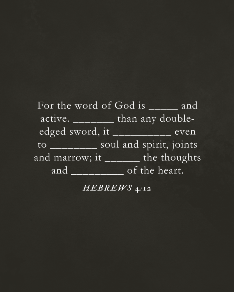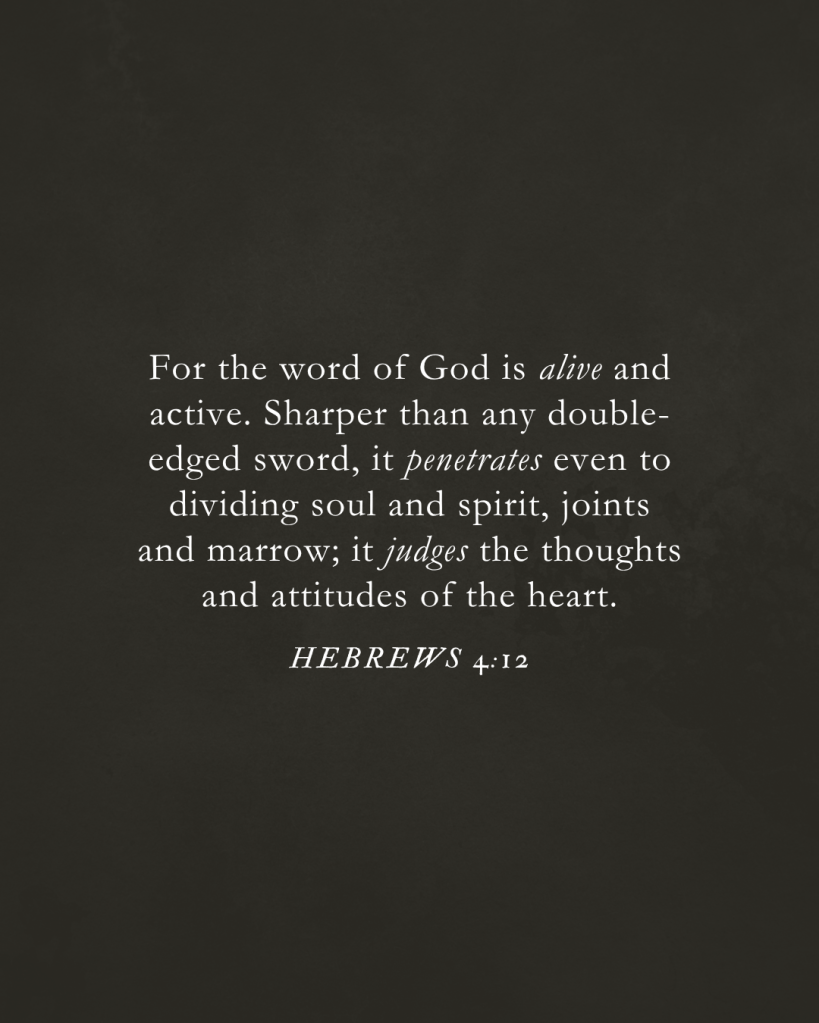 Porque la palabra de Dios es viva y eficaz, y más cortante que cualquier espada de dos filos. Penetra hasta la división del alma y del espíritu, de las coyunturas y los tuétanos, y es poderosa para discernir los pensamientos y las intenciones del corazón.