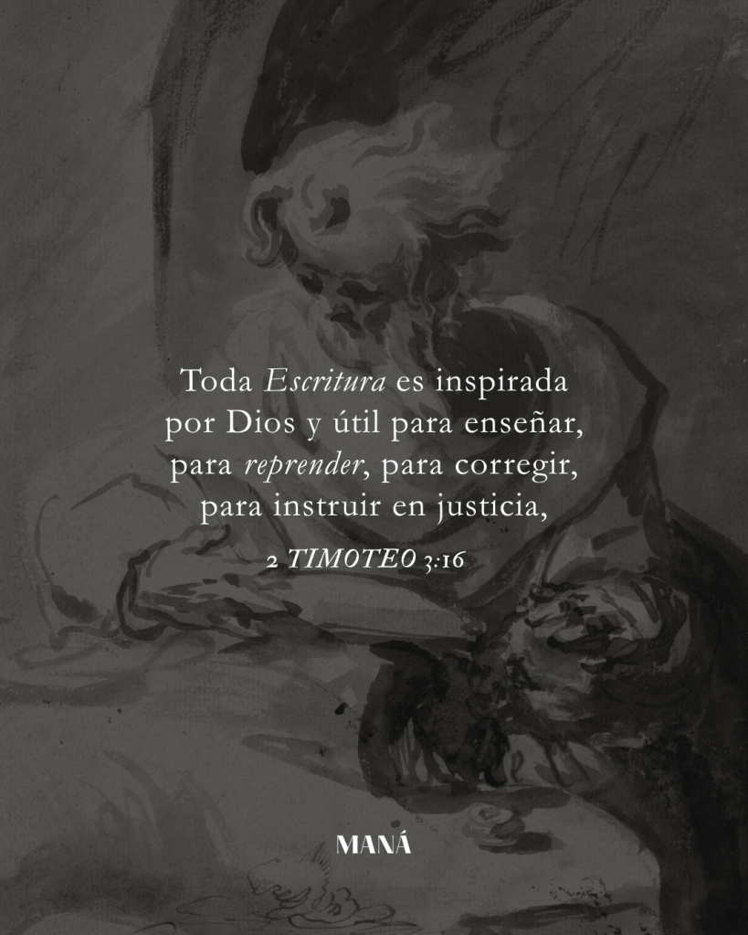 Toda Escritura es inspirada por Dios y útil para enseñar, para reprender, para corregir, para instruir en justicia, a fin de que el hombre de Dios sea perfecto, equipado para toda buena obra.