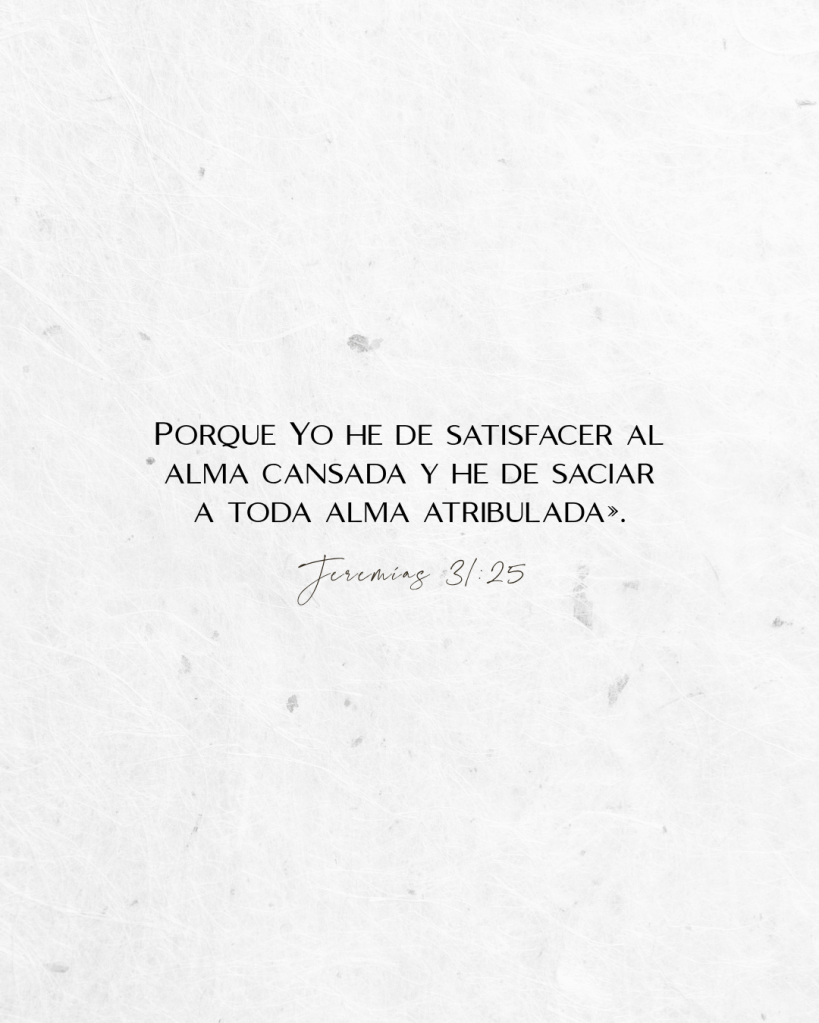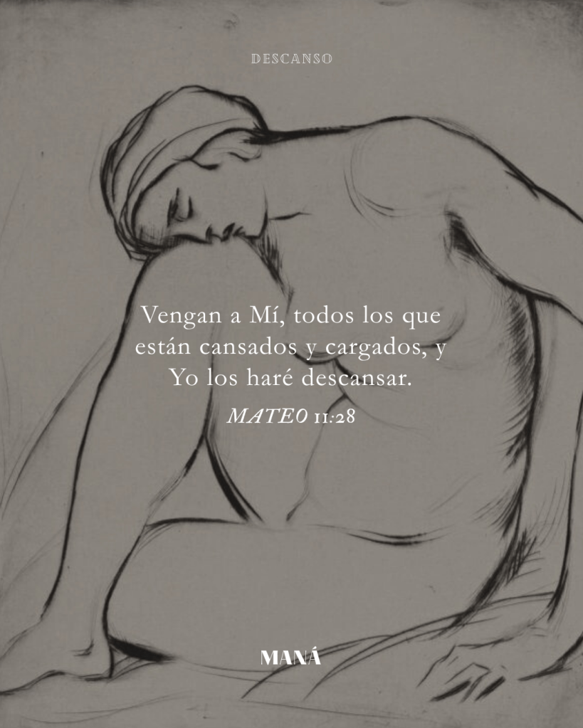 »Vengan a Mí, todos los que están cansados y cargados, y Yo los haré descansar. Tomen Mi yugo sobre ustedes y aprendan de Mí, que Yo soy manso y humilde de corazón, y hallarán descanso para sus almas. Porque Mi yugo es fácil y Mi carga ligera».