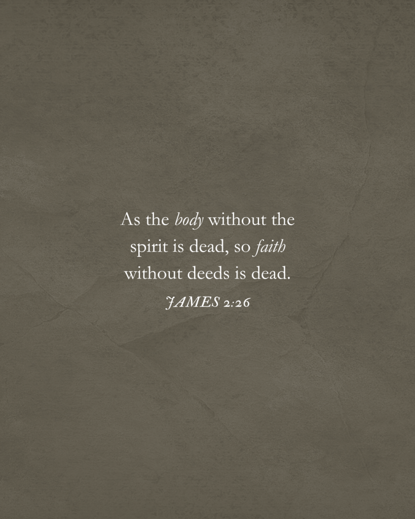 Car comme le corps sans l’esprit est mort, la foi sans les actes est morte.