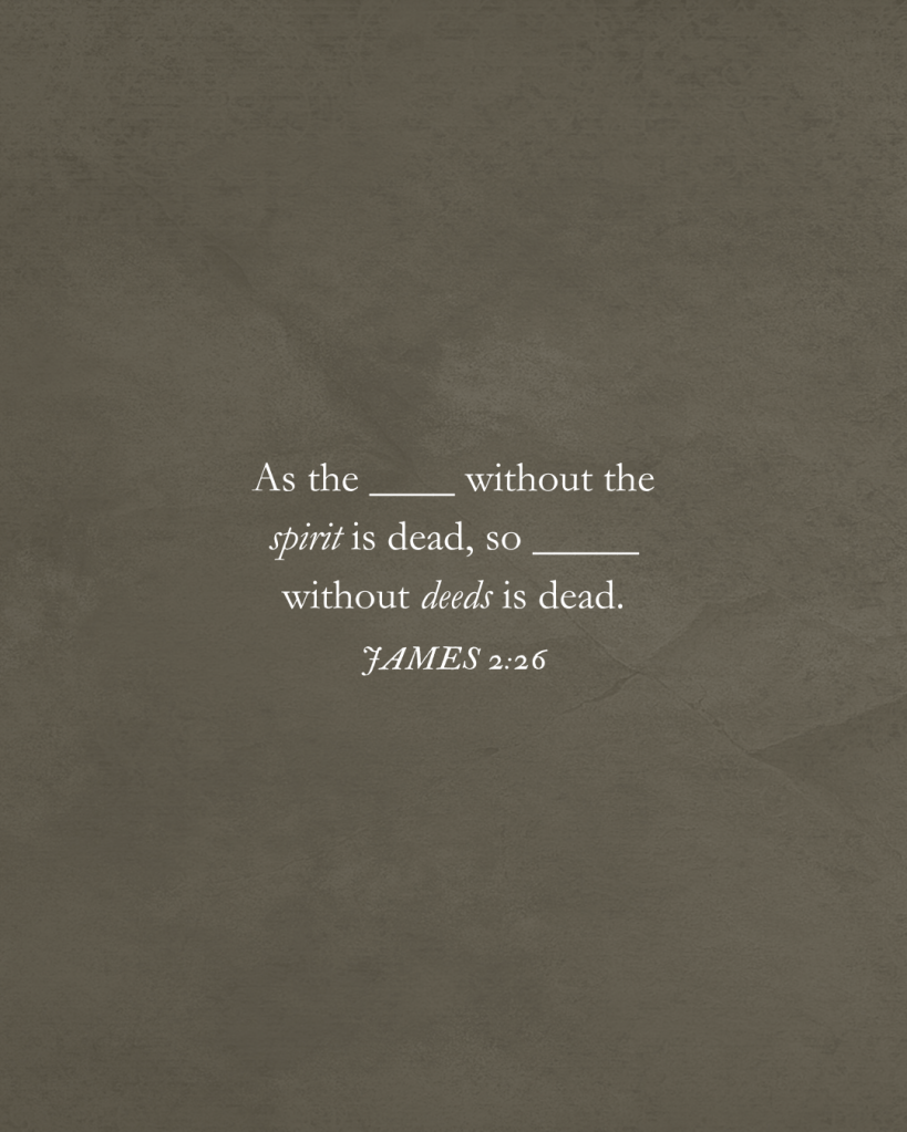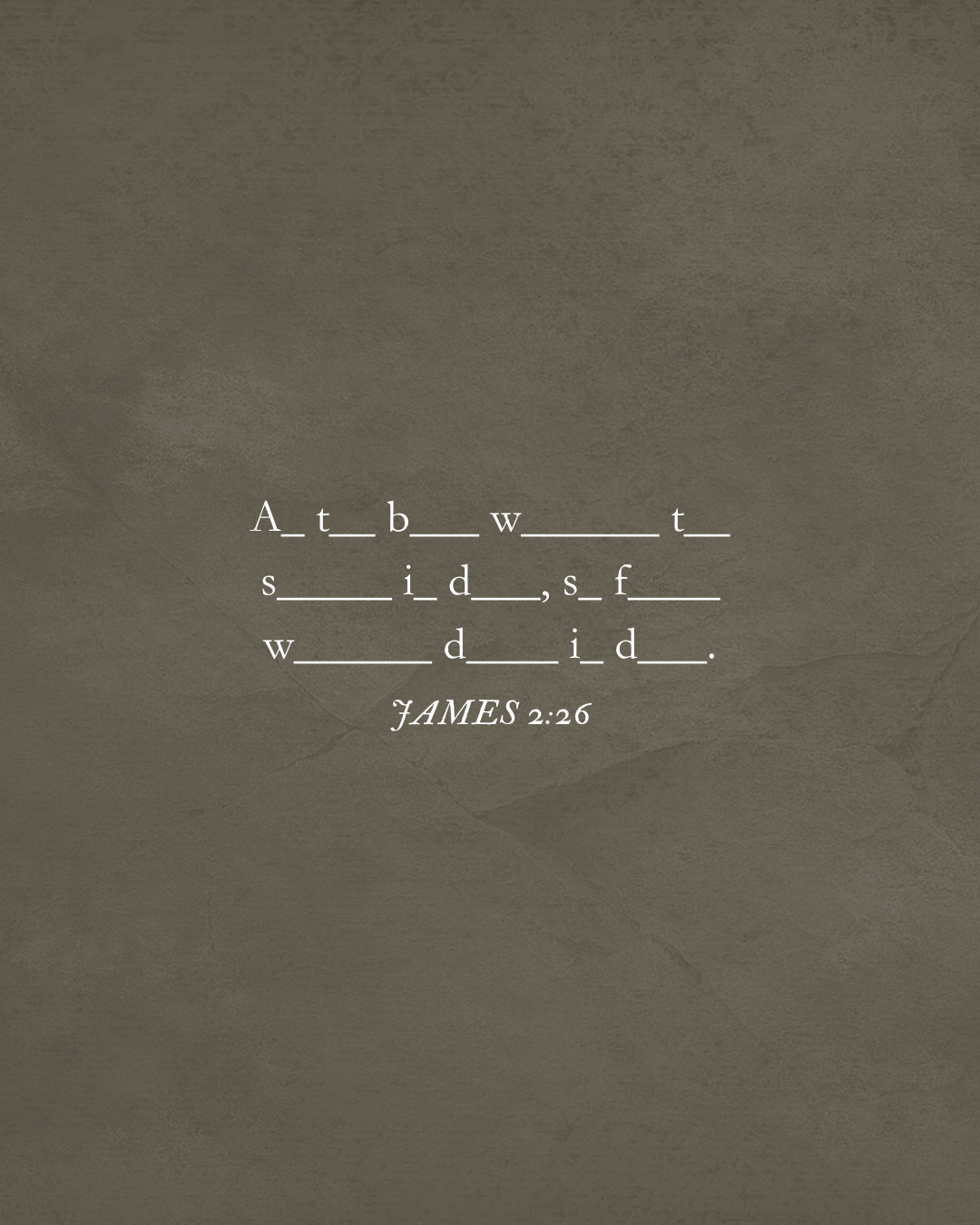 Porque así como el cuerpo sin el espíritu está muerto, así también la fe sin las obras está muerta.