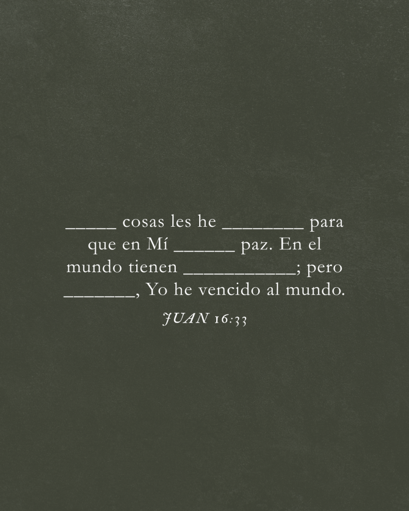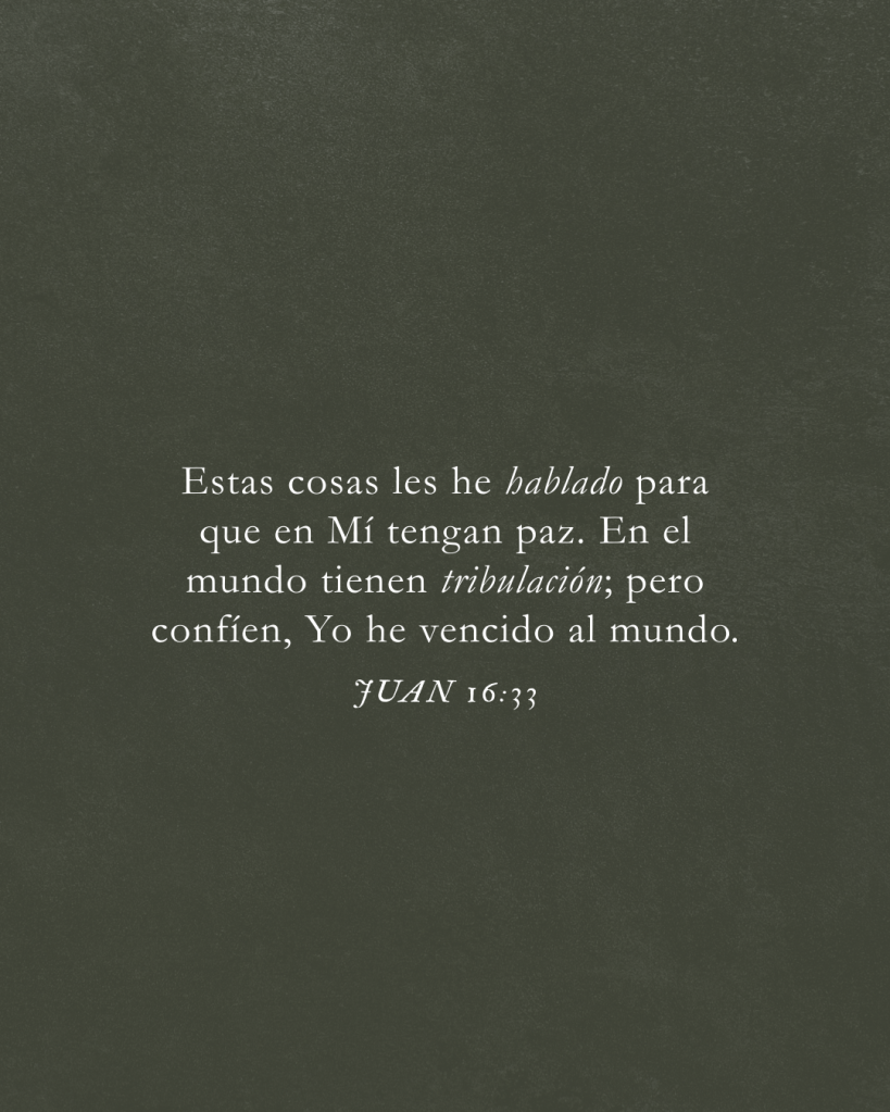 “I have told you these things, so that in me you may have peace. In this world you will have trouble. But take heart! I have overcome the world.”