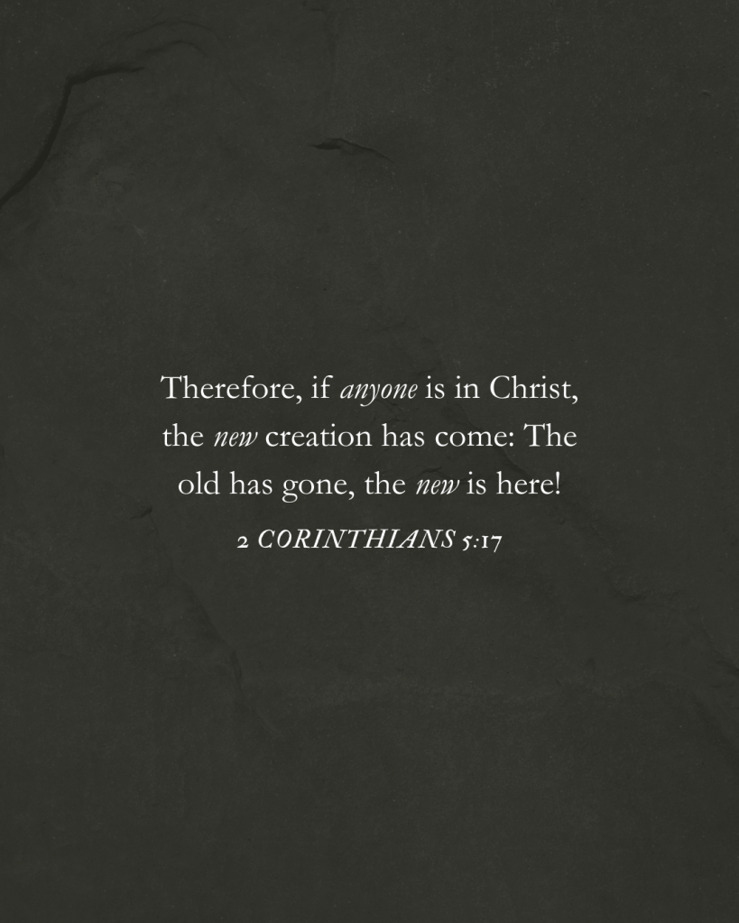 若 有 人 在 基 督 裡 , 他 就 是 新 造 的 人 , 舊 事 已 過 , 都 變 成 新 的 了 。