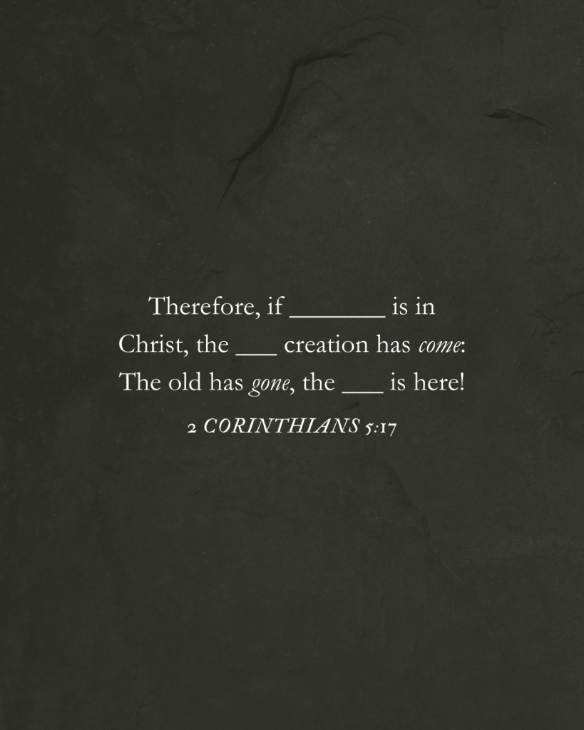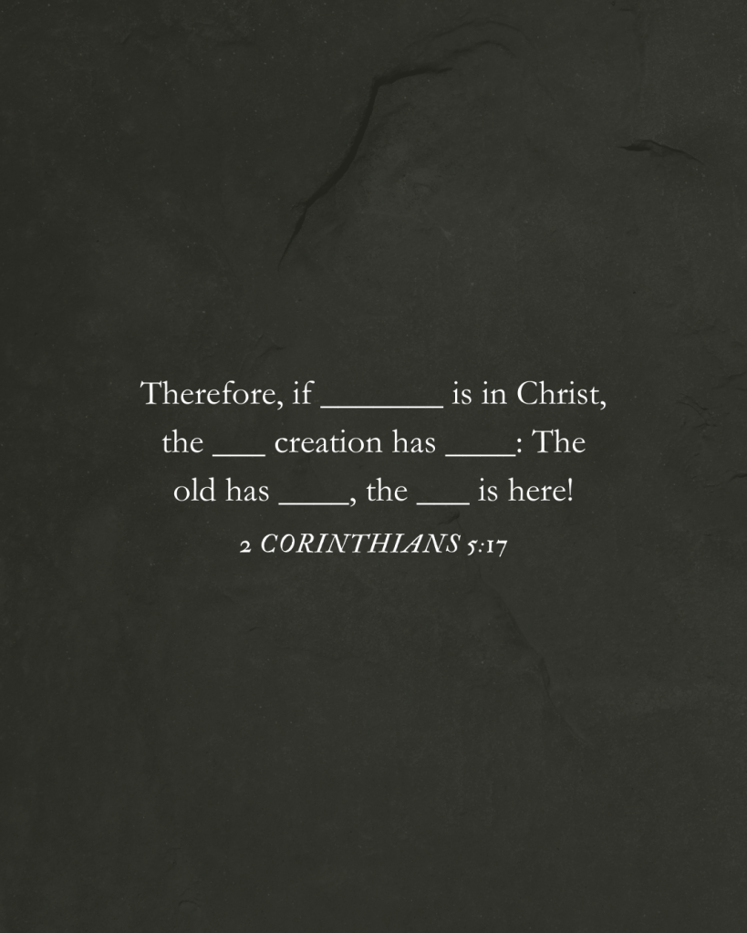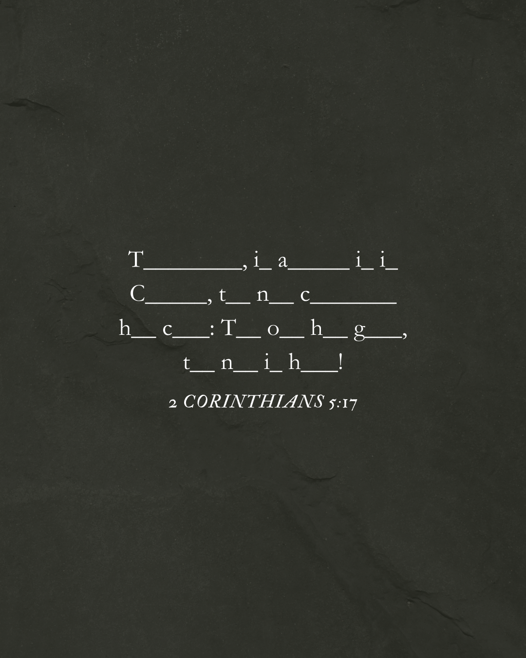 De modo que si alguno está en Cristo, nueva criatura es; las cosas viejas pasaron, ahora han sido hechas nuevas.