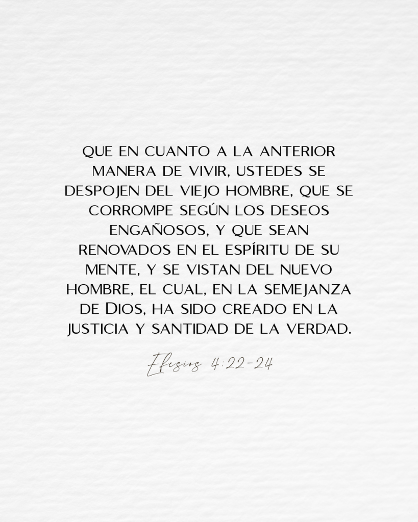 De manera que nosotros de ahora en adelante ya no conocemos a nadie según la carne. Aunque hemos conocido a Cristo según la carne, sin embargo, ahora ya no lo conocemos así. De modo que si alguno está en Cristo, nueva criatura es; las cosas viejas pasaron, ahora han sido hechas nuevas.