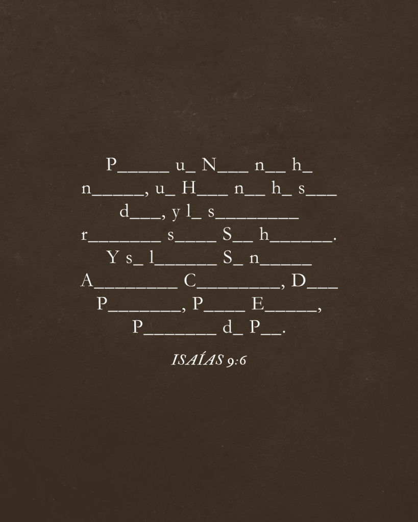 «المُشِيرَ العَجِيبَ، اللهَ الجَبَّارَ، الأبَ الأبَدِيَّ، رَئِيسَ السَّلَامِ.»