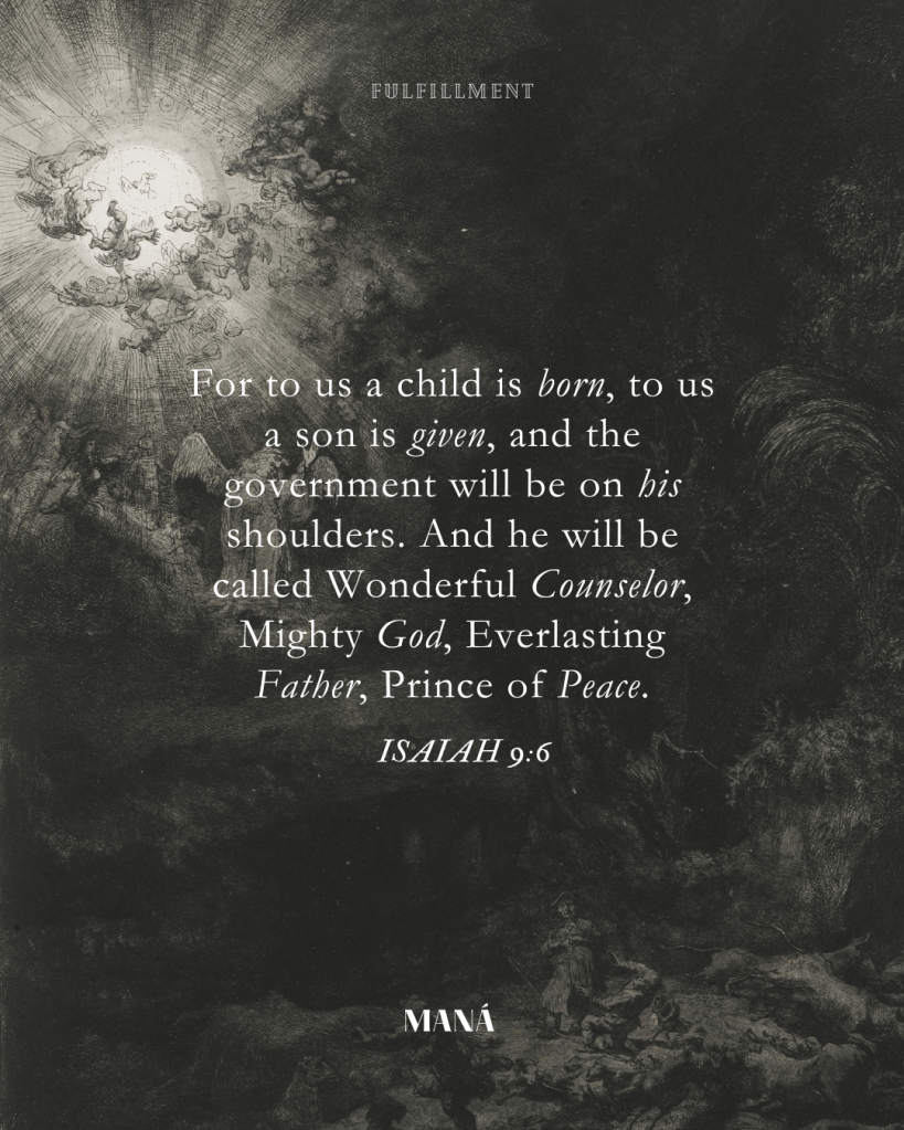 For to us a child is born, to us a son is given, and the government will be on his shoulders. And he will be called Wonderful Counselor, Mighty God, Everlasting Father, Prince of Peace. Of the greatness of his government and peace there will be no end. He will reign on David’s throne and over his kingdom, establishing and upholding it with justice and righteousness from that time on and forever. The zeal of the Lord Almighty will accomplish this.