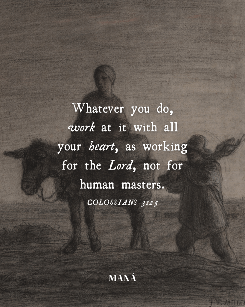 Slaves, obey your earthly masters in everything; and do it, not only when their eye is on you and to curry their favor, but with sincerity of heart and reverence for the Lord. Whatever you do, work at it with all your heart, as working for the Lord, not for human masters, since you know that you will receive an inheritance from the Lord as a reward. It is the Lord Christ you are serving.