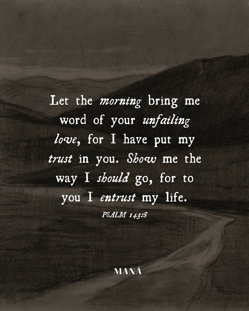 Respóndeme pronto, oh Señor, porque mi espíritu desfallece; no escondas de mí Tu rostro, para que no llegue yo a ser como los que descienden a la sepultura. Por la mañana hazme oír Tu misericordia, porque en Ti confío; enséñame el camino por el que debo andar, pues a Ti elevo mi alma.