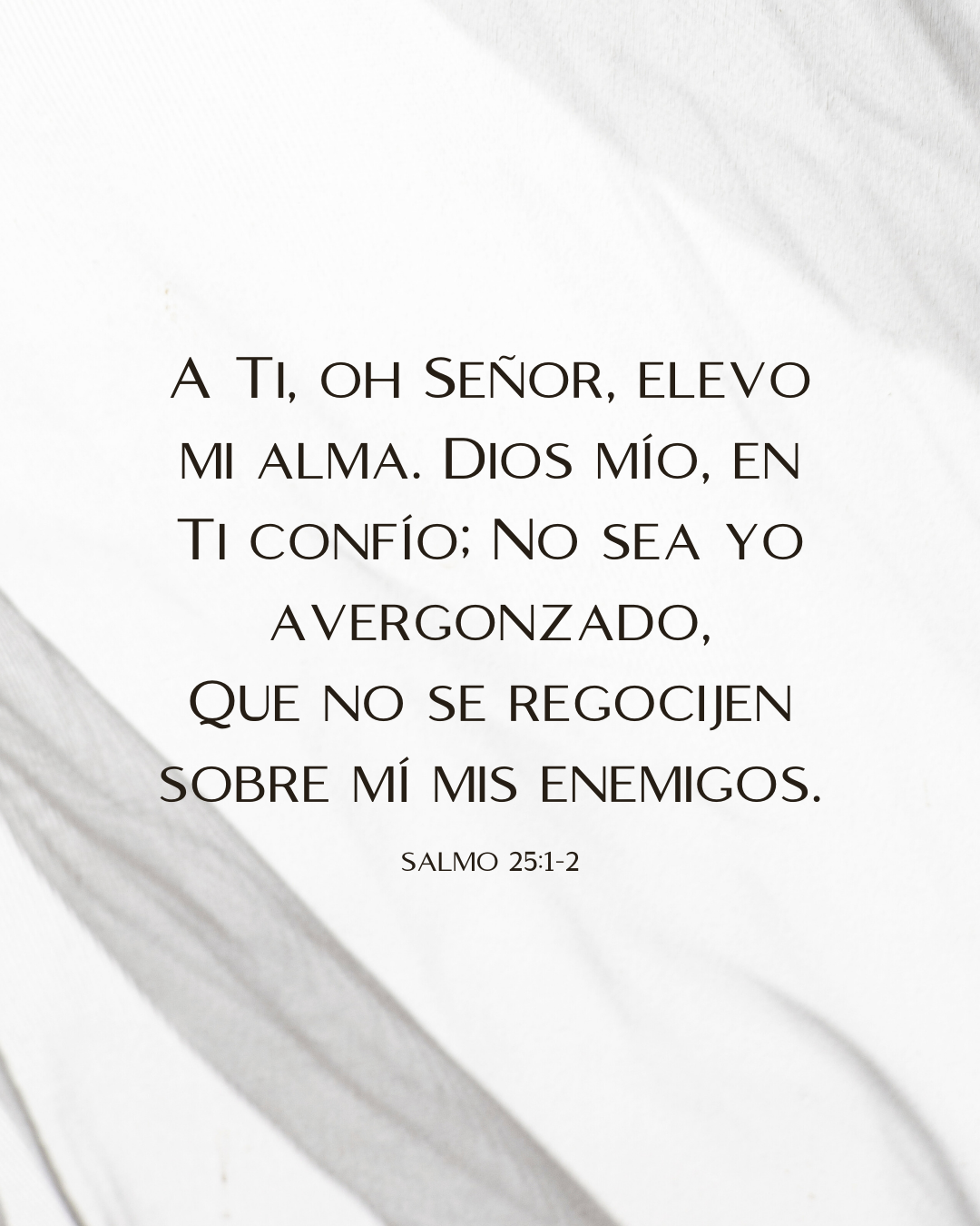 Respóndeme pronto, oh Señor, porque mi espíritu desfallece; no escondas de mí Tu rostro, para que no llegue yo a ser como los que descienden a la sepultura. Por la mañana hazme oír Tu misericordia, porque en Ti confío; enséñame el camino por el que debo andar, pues a Ti elevo mi alma. Líbrame de mis enemigos, oh Señor; en Ti me refugio. Enséñame a hacer Tu voluntad, porque Tú eres mi Dios; Tu buen Espíritu me guíe a tierra firme. Por amor a Tu nombre, Señor, vivifícame; por Tu justicia, saca mi alma de la angustia. Y por Tu misericordia, acaba con mis enemigos, y destruye a todos los que afligen mi alma; pues yo soy Tu siervo.