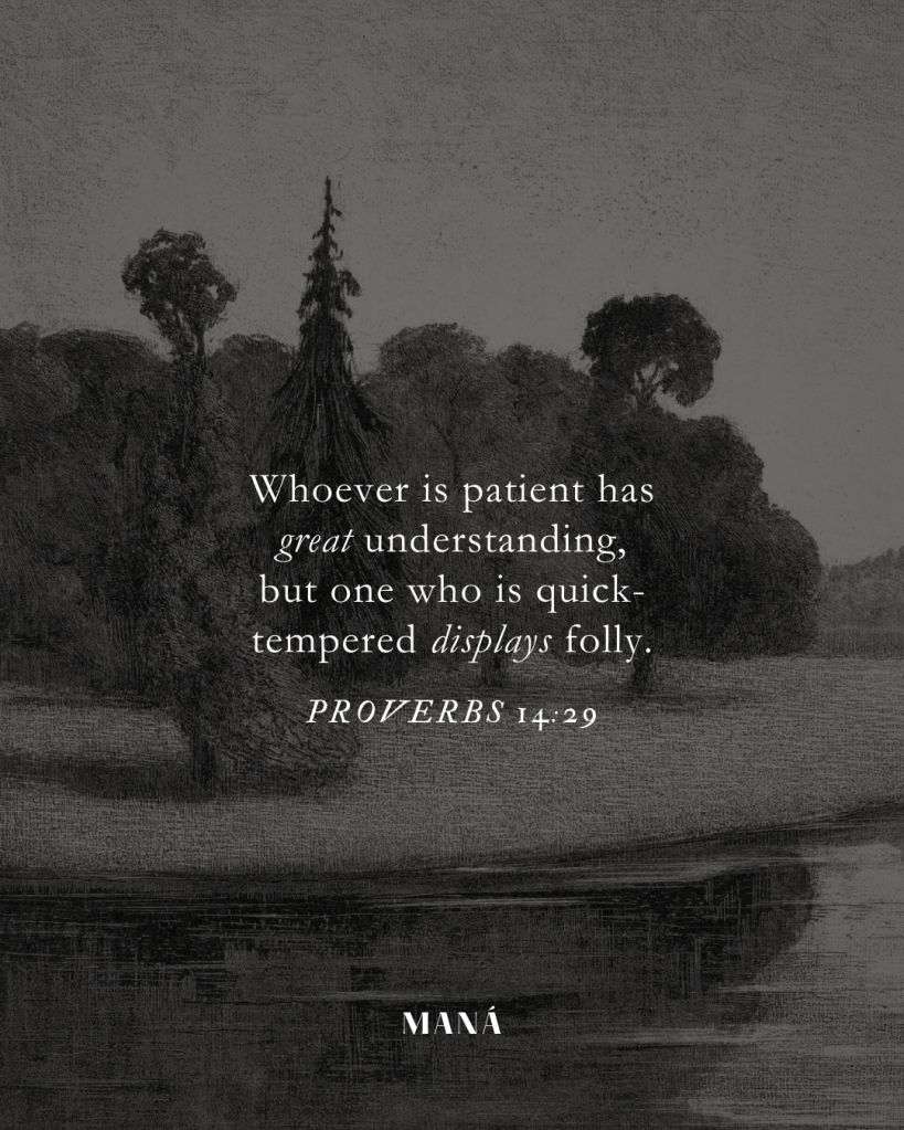Many of Solomon’s proverbs compare and contrast the upright and the wicked. Pick almost any chapter, and we can read about the way of the righteous and warnings against the path of the wayward and corrupt. In 14:29, we are reminded that wisdom is not immediate. It takes time to obtain knowledge, and part of the struggle is choosing wisdom when folly is more attainable, rewarding, and desirable. What is the point of acquiring knowledge and wisdom if not to use it? As we go out into the week, let us recognize the situations where we can reside in wisdom and resist being reactionary, full of rage, and impulse. And even if we have a moment of weakness where anger gets the best of us, let it be fleeting. Let us not harden ourselves to goodness, and let us not seek intentions that work to harm others.