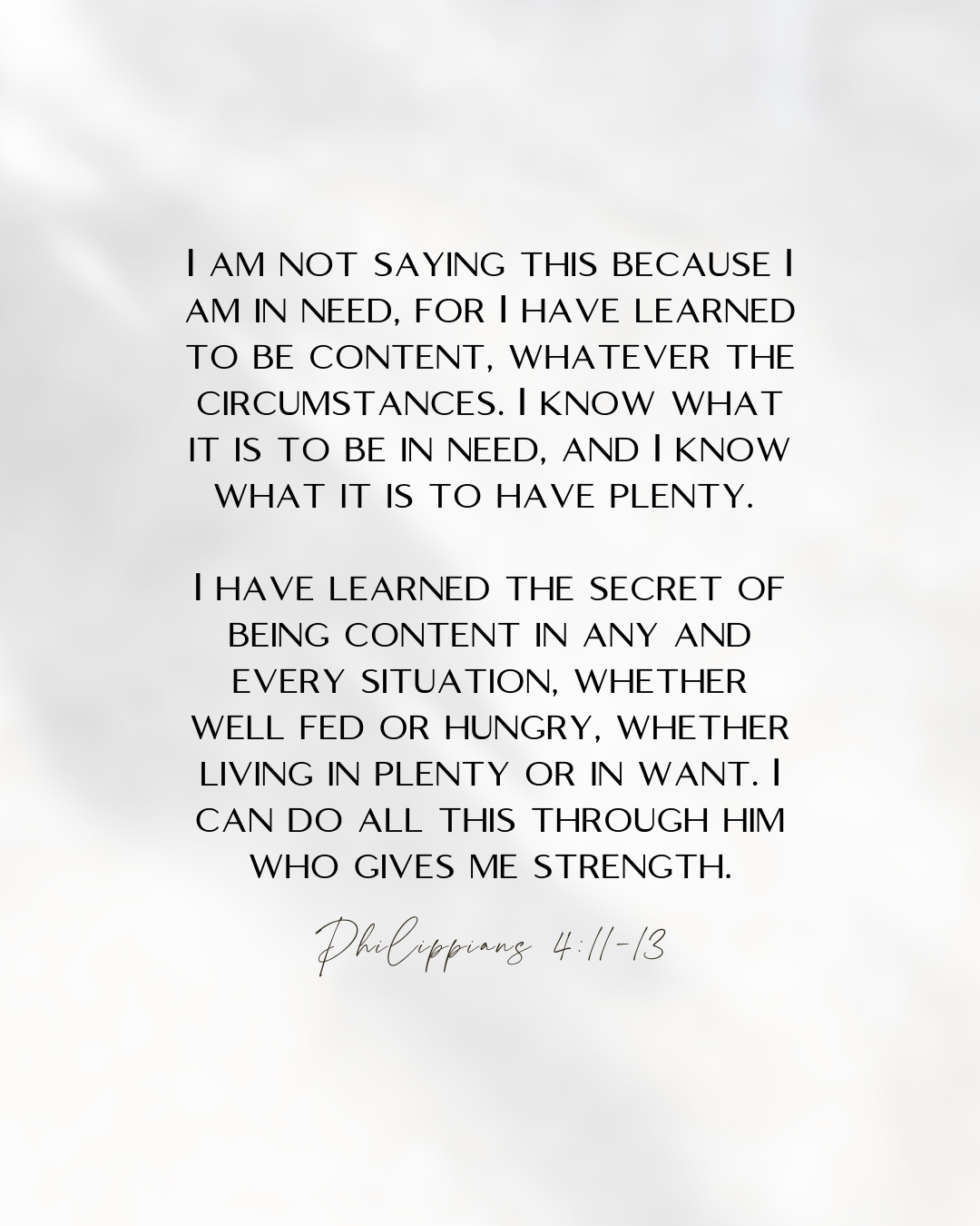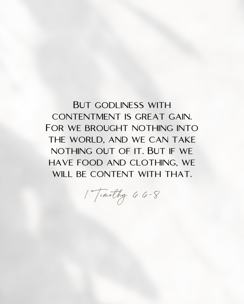 Content does not mean that we give up and not try our best. On the contrary, we are told to work as if we work for the Lord (Colossians 3:23-24), but instead of gaining wealth, we are acting in gratitude for a gift that supersedes any salary or bonus. We are given eternal life not because we deserved or even earned it but simply because we believe and follow Christ. Contentment and living a sacrificial life is counter-culture to say the least, to the hustle and bustle of the survival of the fittest mentality we are surrounded by.