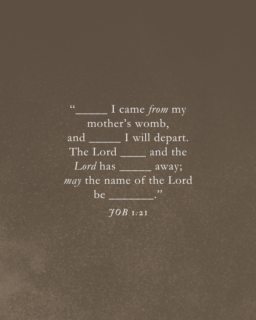 Je suis sorti nu du ventre de ma mère, et j’y retournerai nu. L’Eternel a donné, l’Eternel a repris : que l’Eternel soit béni !