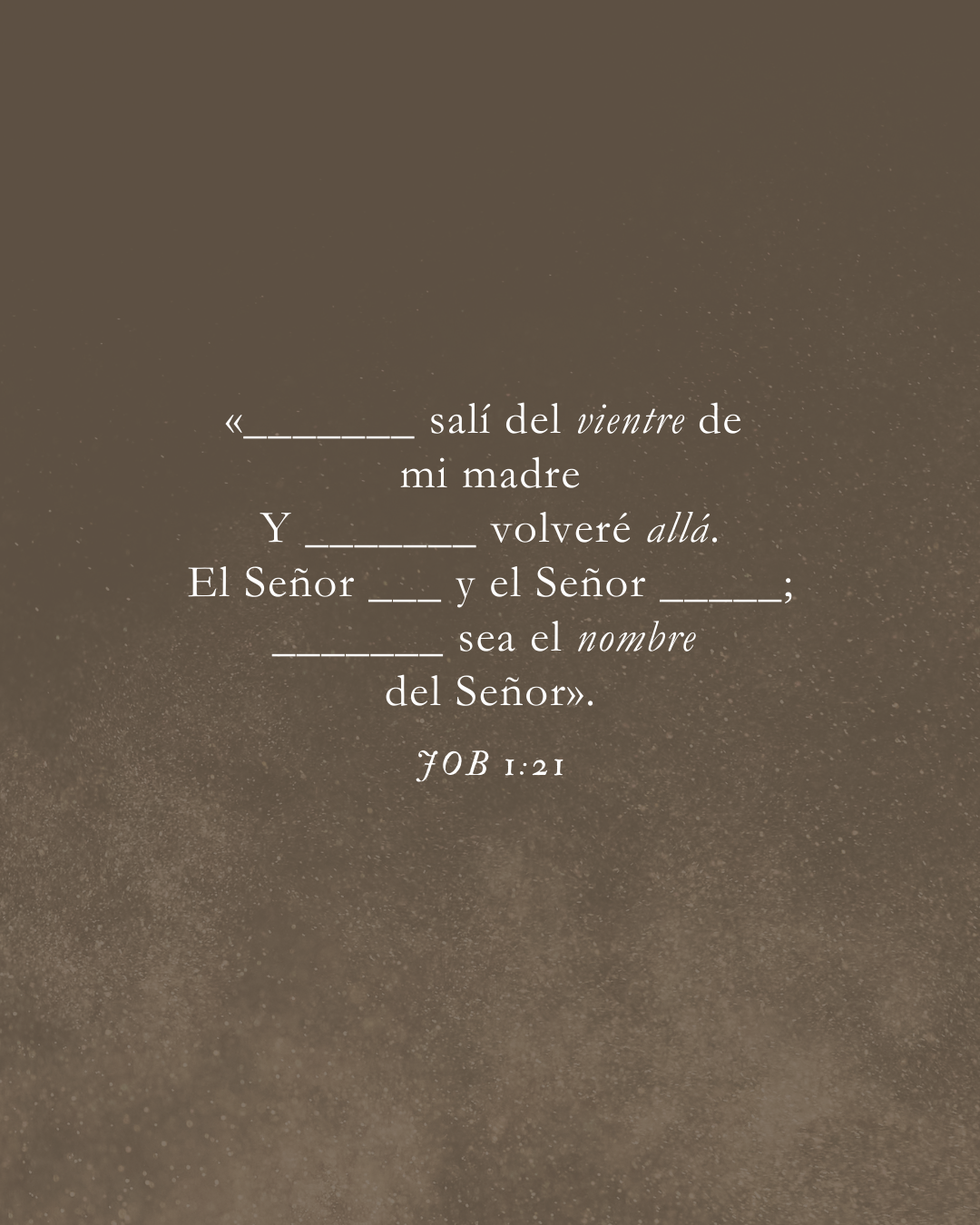 Je suis sorti nu du ventre de ma mère, et j’y retournerai nu. L’Eternel a donné, l’Eternel a repris : que l’Eternel soit béni !