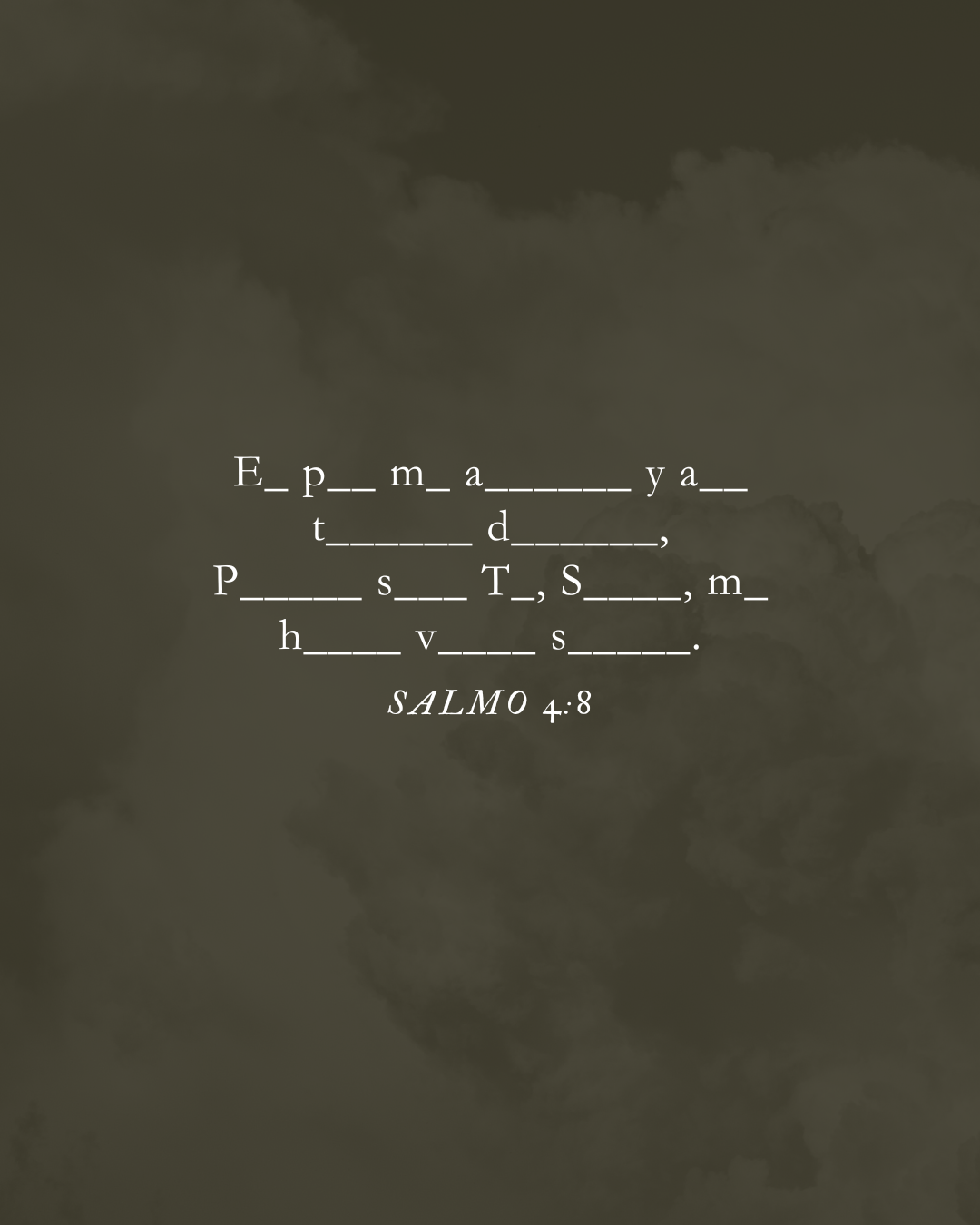 我 必 安 然 躺 下 睡 覺 , 因 為 獨 有 你 ─ 耶 和 華 使 我 安 然 居 住 。