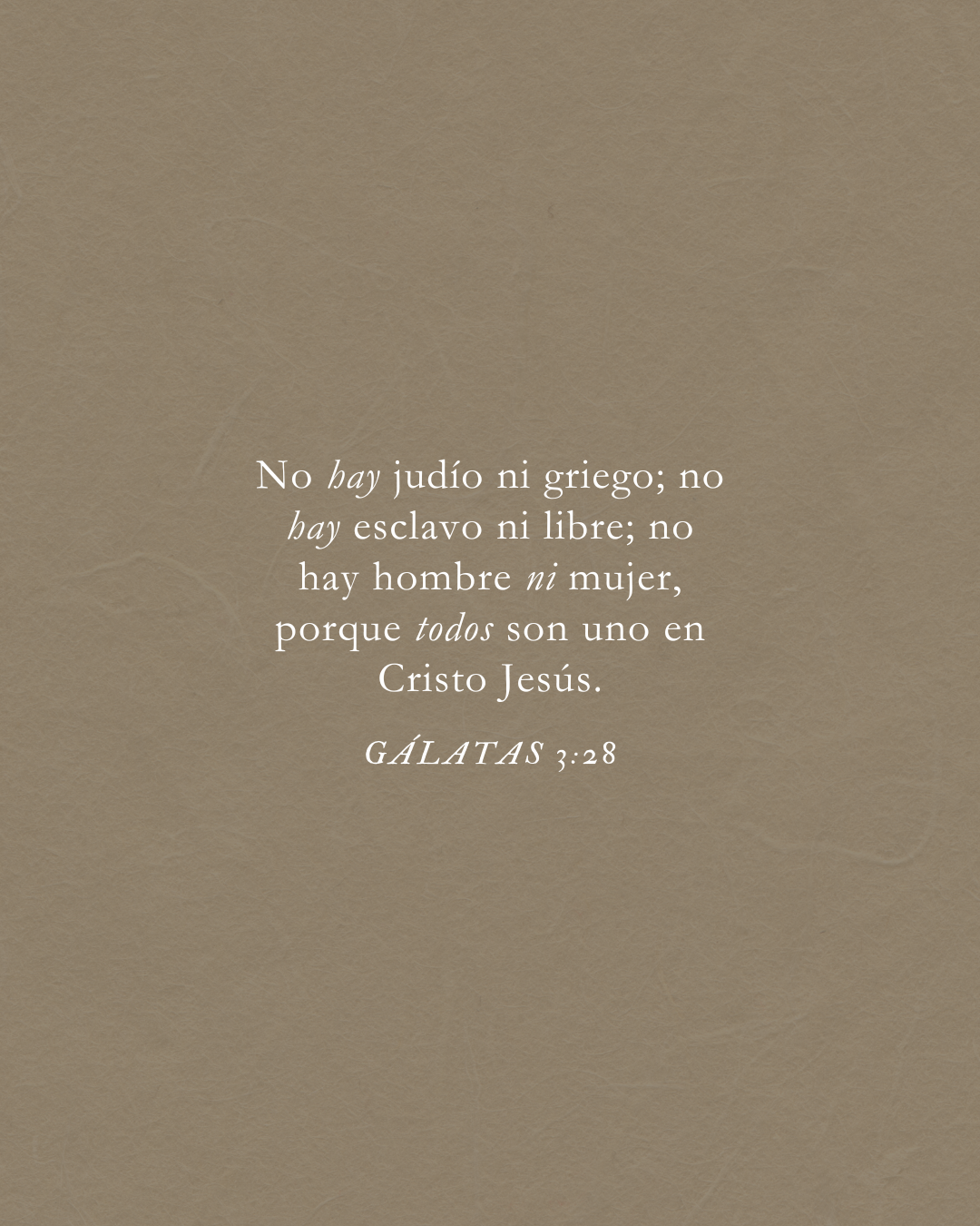 There is neither Jew nor Greek, there is neither slave nor free, there is no male and female, for you are all one in Christ Jesus.