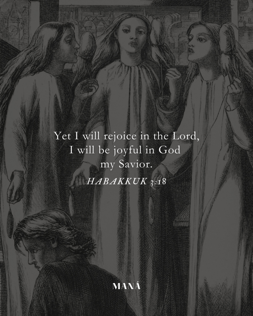 I heard and my heart pounded, my lips quivered at the sound; decay crept into my bones, and my legs trembled. Yet I will wait patiently for the day of calamity to come on the nation invading us. Though the fig tree does not bud and there are no grapes on the vines, though the olive crop fails and the fields produce no food, though there are no sheep in the pen and no cattle in the stalls, yet I will rejoice in the Lord, I will be joyful in God my Savior.