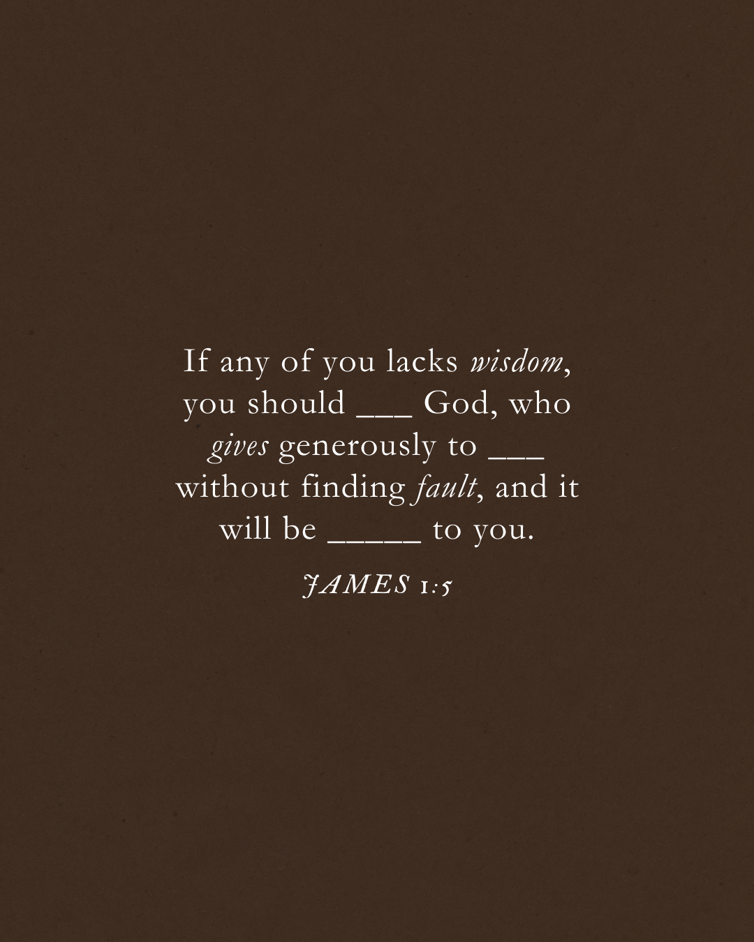 Si l’un de vous manque de sagesse, qu’il la demande à Dieu qui la lui donnera, car il donne à tous généreusement et sans faire de reproche.