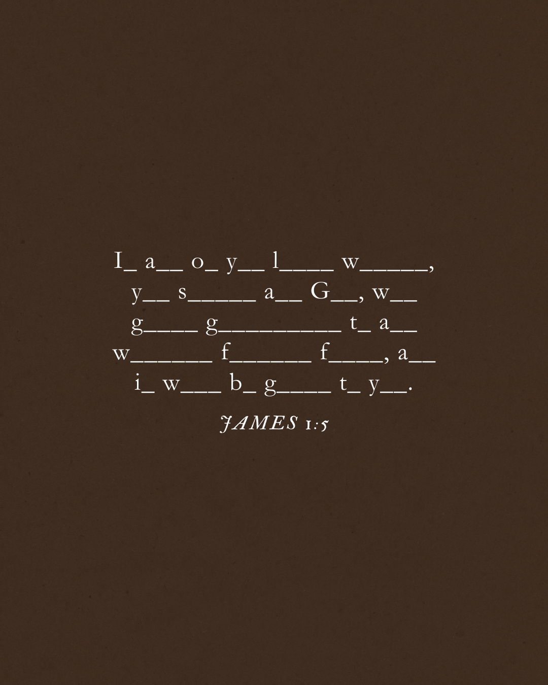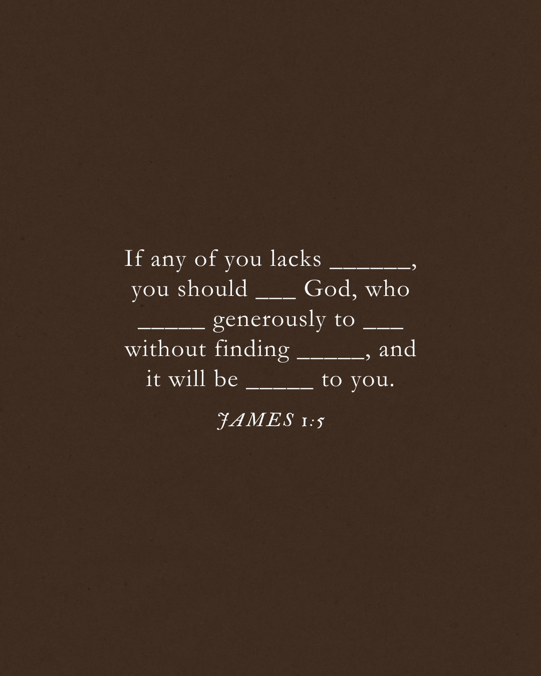 你 们 中 间 若 有 缺 少 智 慧 的 , 应 当 求 那 厚 赐 与 众 人 、 也 不 斥 责 人 的 神 , 主 就 必 赐 给 他 。