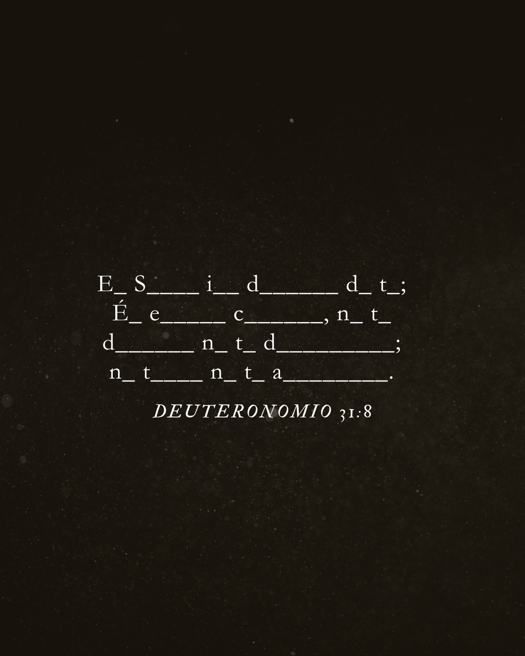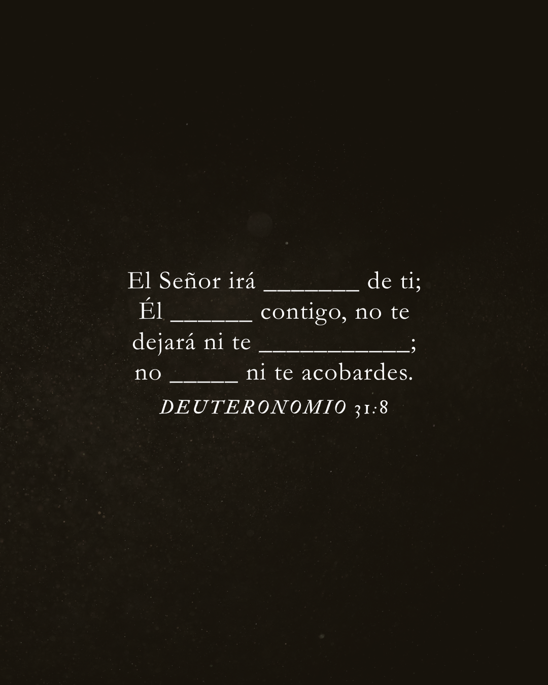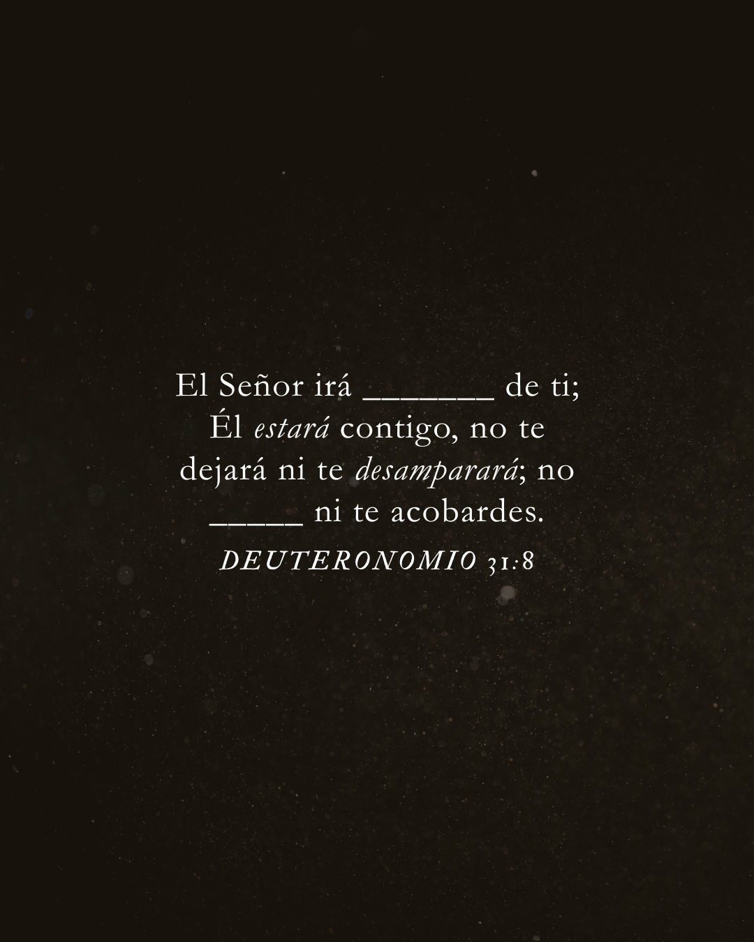 L’Eternel lui-même marchera devant toi, il sera avec toi, il ne te délaissera pas et il ne t’abandonnera pas. Ne crains rien et ne te laisse pas effrayer !