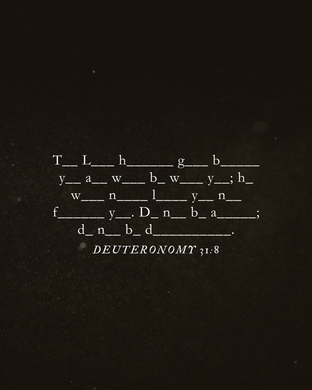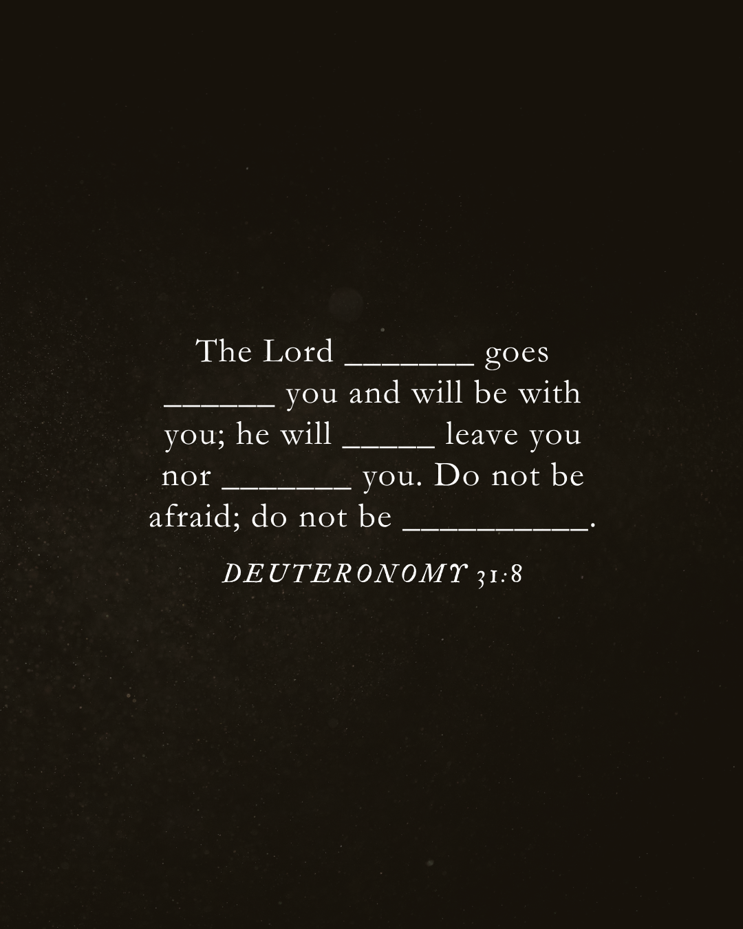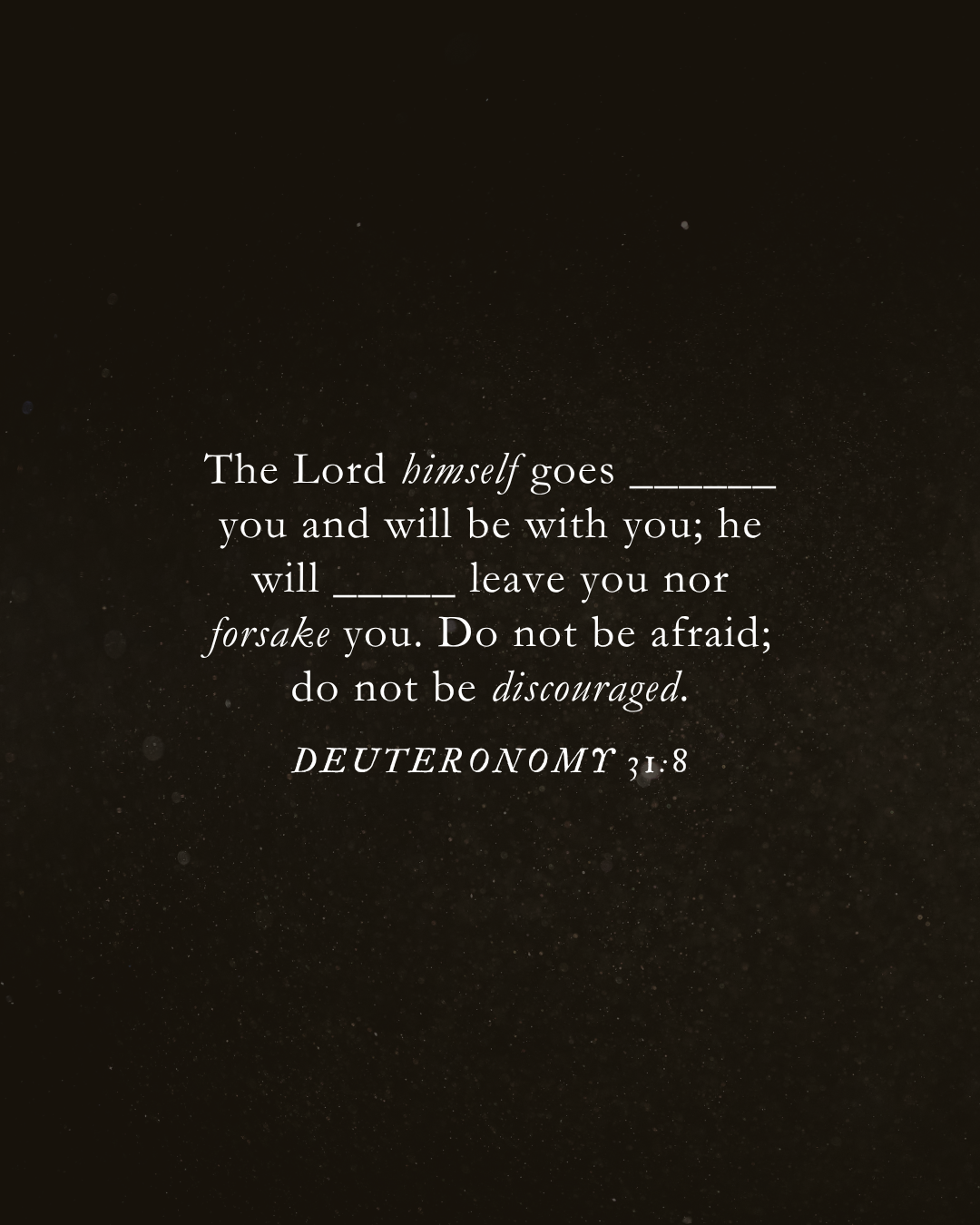 El Señor irá delante de ti; Él estará contigo, no te dejará ni te desamparará; no temas ni te acobardes».