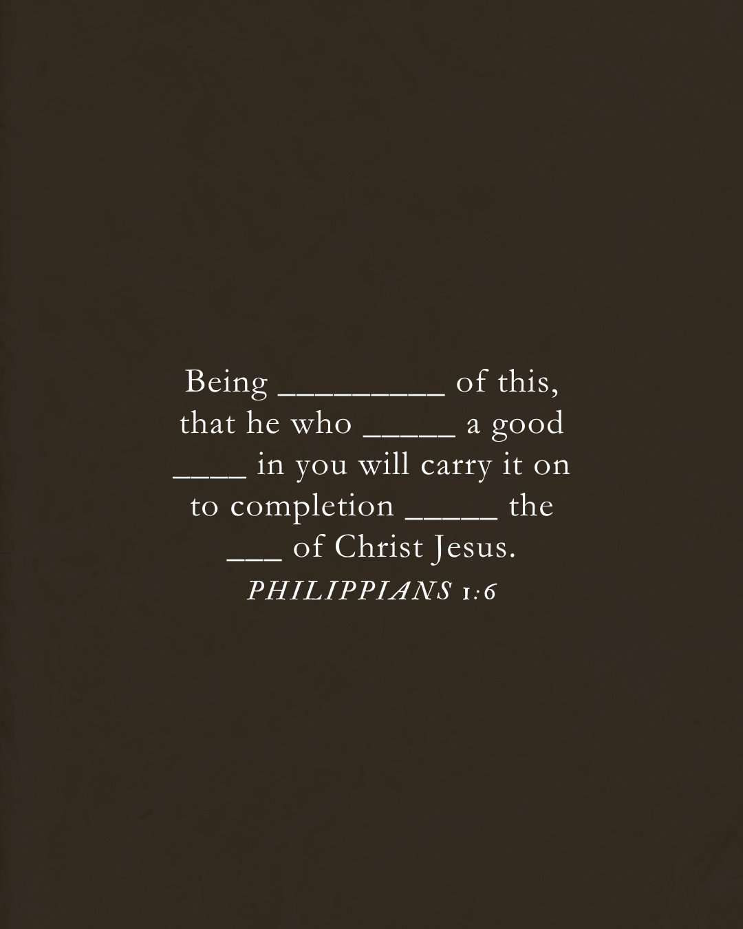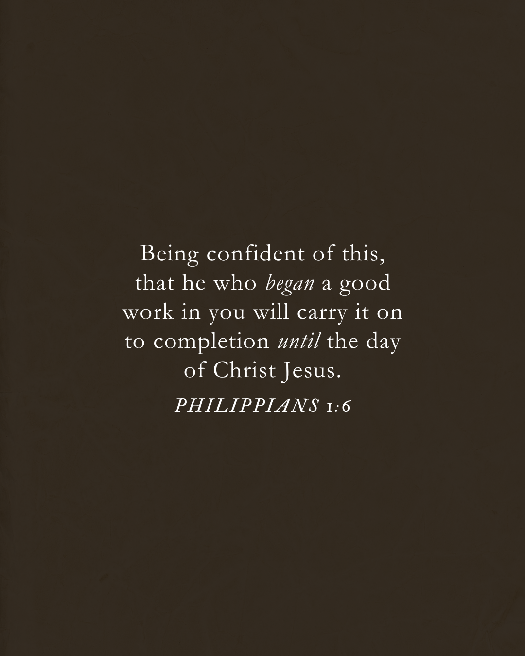 Estoy convencido precisamente de esto: que el que comenzó en ustedes la buena obra, la perfeccionará hasta el día de Cristo Jesús.