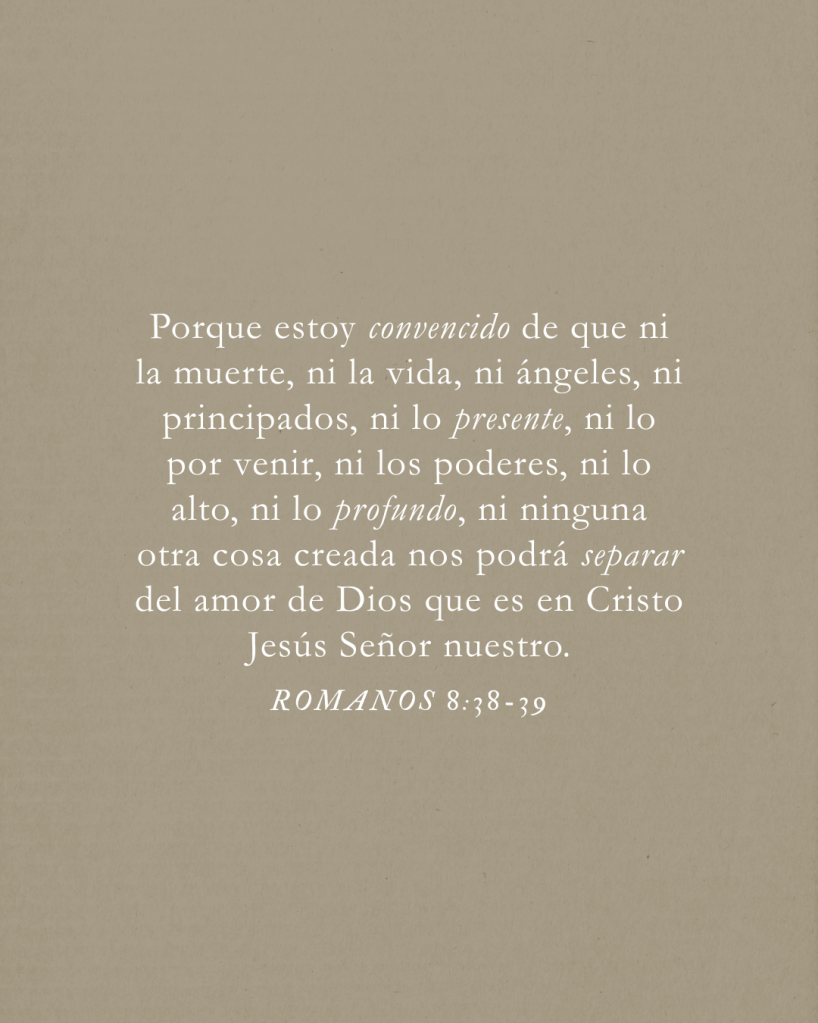 For I am convinced that neither death nor life, neither angels nor demons, neither the present nor the future, nor any powers, neither height nor depth, nor anything else in all creation, will be able to separate us from the love of God that is in Christ Jesus our Lord.
