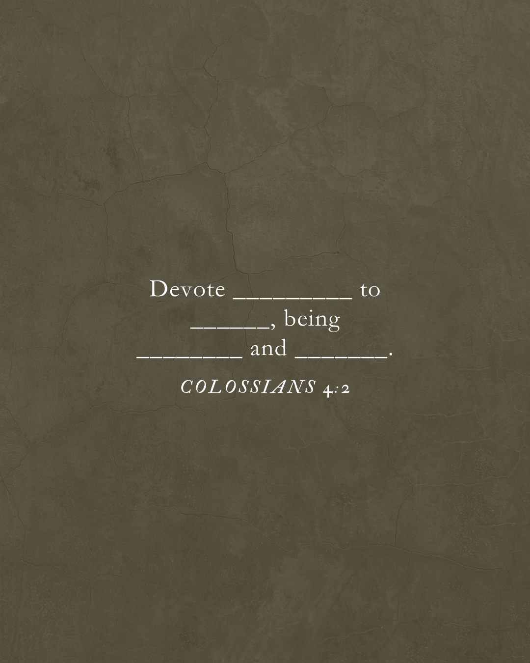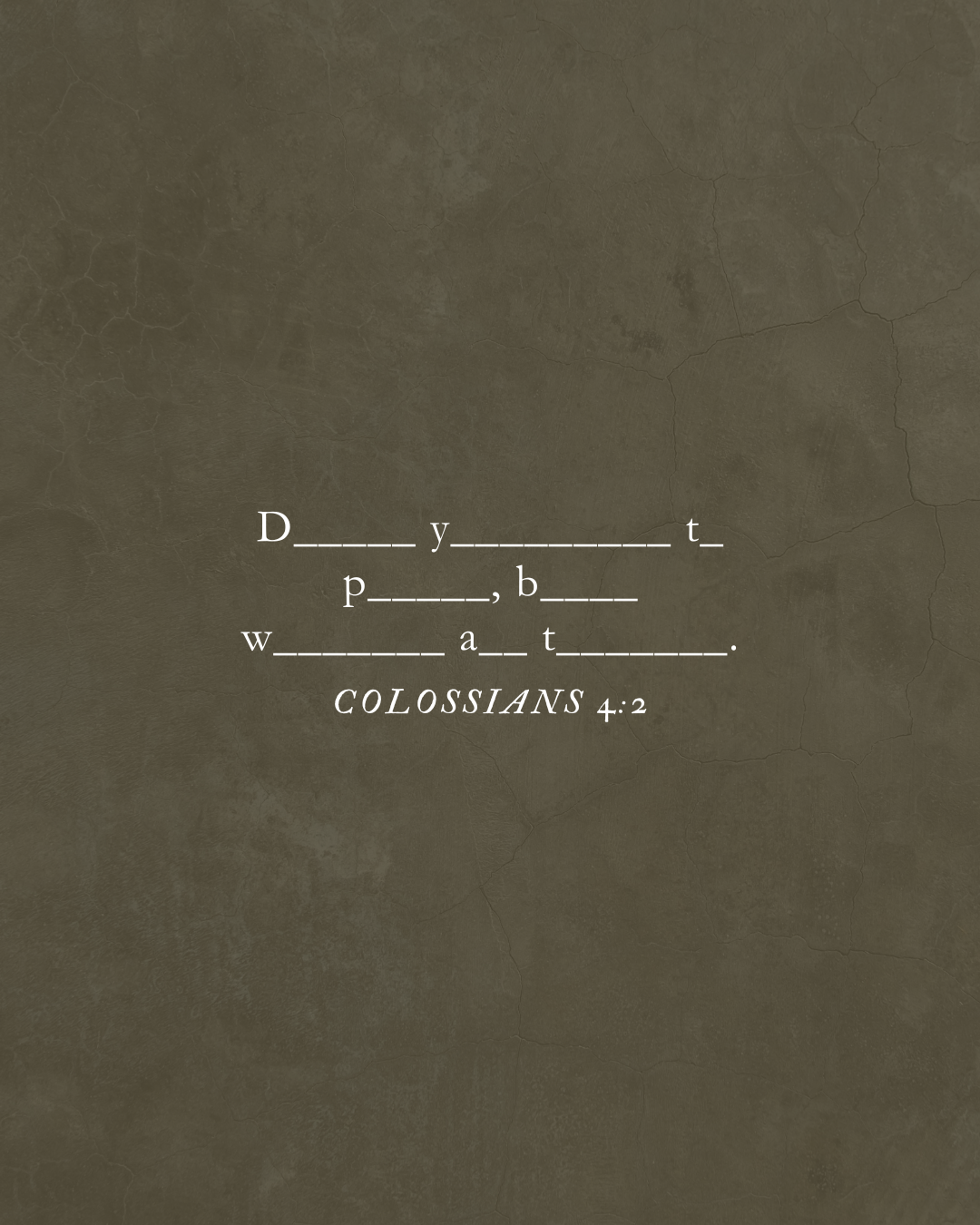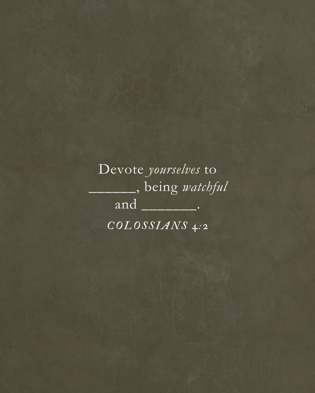 你 们 要 恒 切 祷 告 , 在 此 儆 醒 感 恩 。