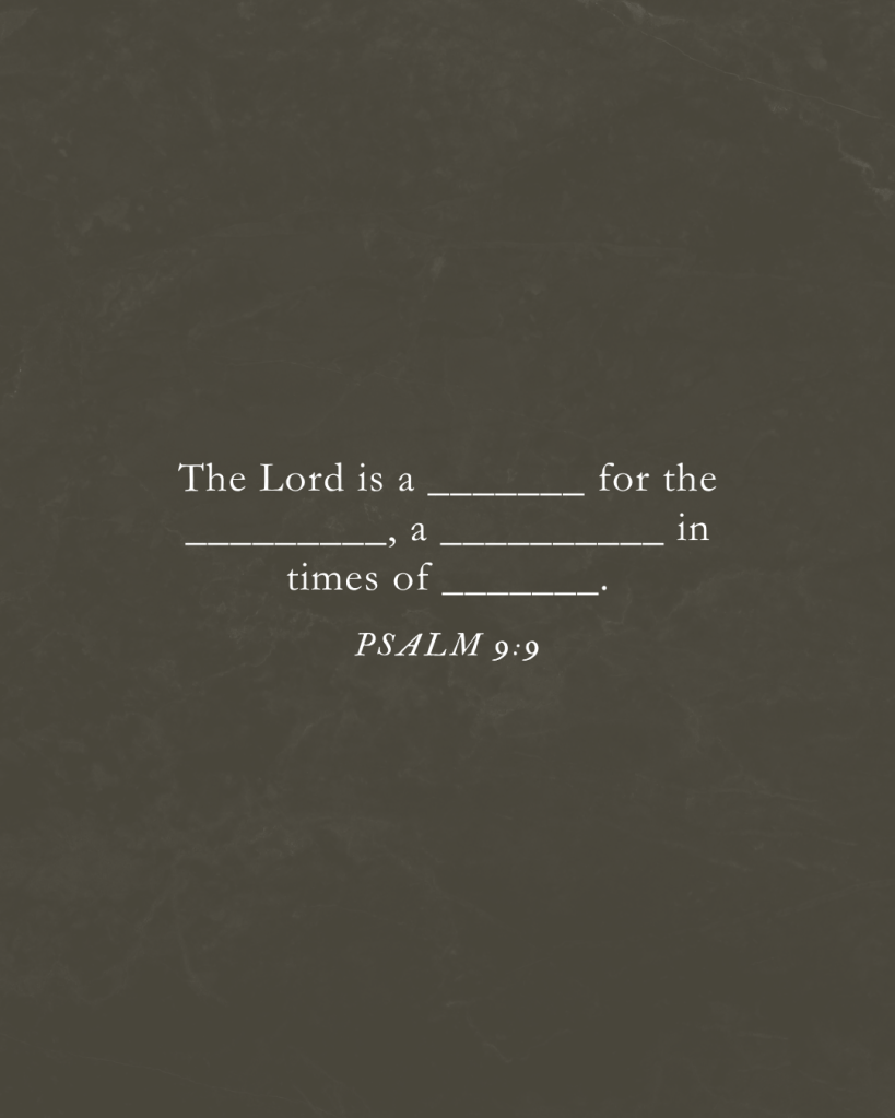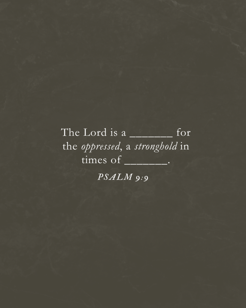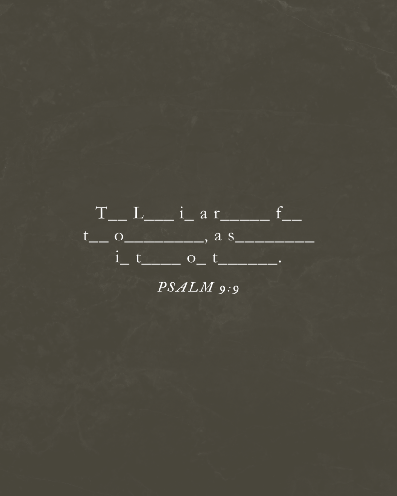 耶 和 华 又 要 给 受 欺 压 的 人 作 高 ? , 在 患 难 的 时 候 作 高 ? 。