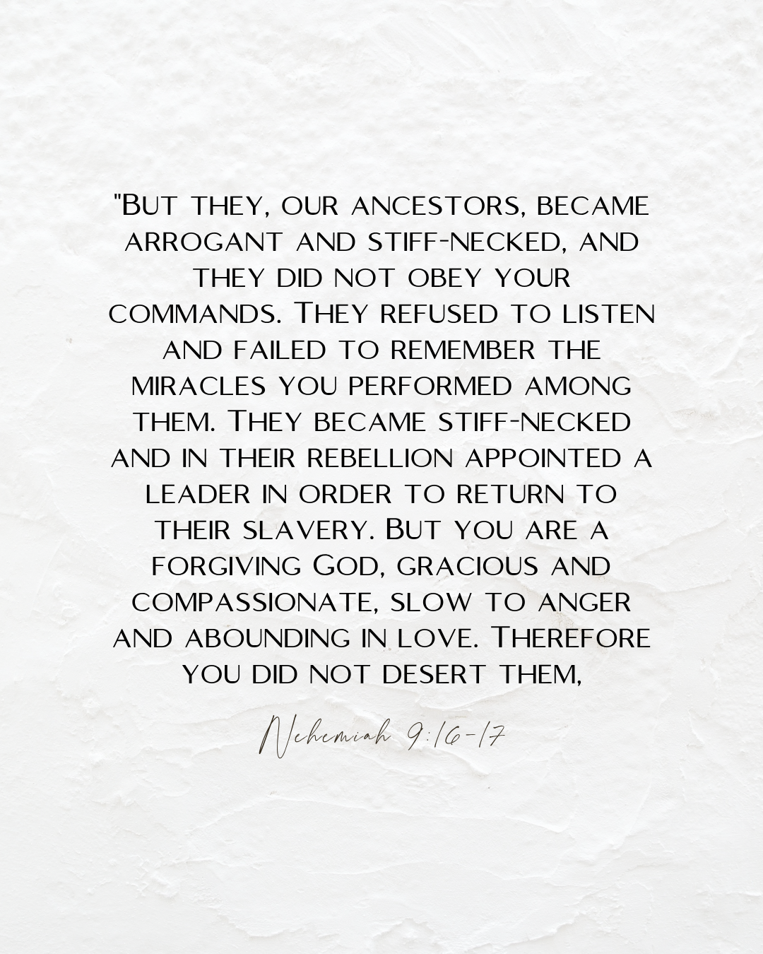 The Hebrew words for “gracious” and “compassionate” are used together as a couplet eleven of the thirteen times they are used in the Bible. They are used almost exclusively to describe God. They first appear when God describes himself by these words in Exodus 34:5-7, declaring, “The Lord, the Lord, the compassionate and gracious God, slow to anger, and abounding in loyal love and faithfulness, keeping loyal love for thousands, forgiving iniquity and transgression and sin. But he by no means leaves the guilty unpunished, responding to the transgression of fathers by dealing with children and children’s children, to the third and fourth generation.”