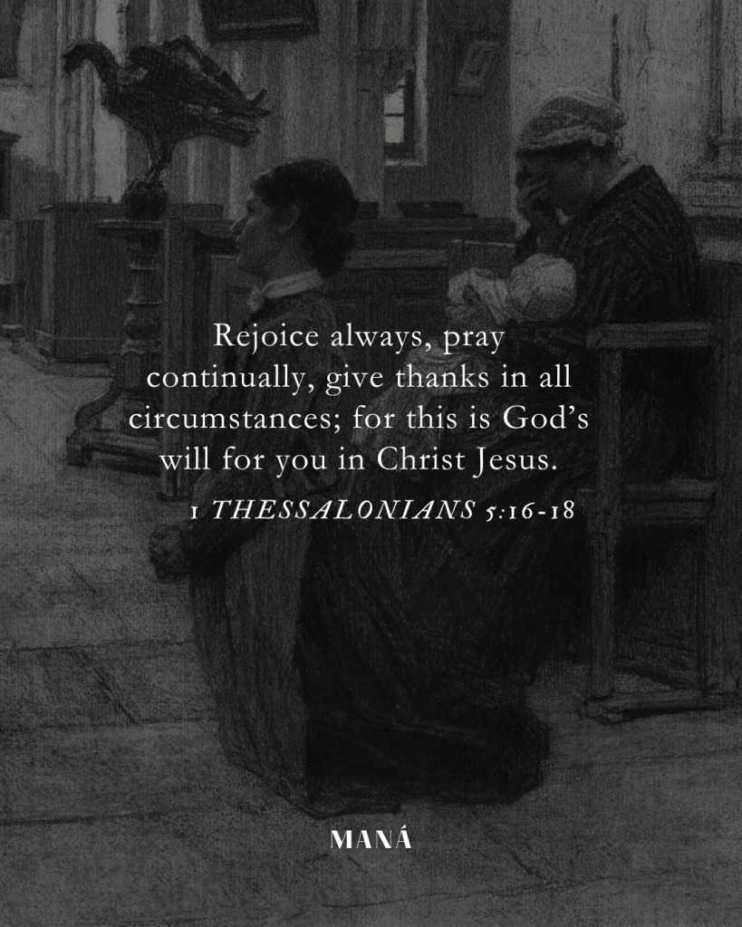 Rejoice always, pray continually, give thanks in all circumstances; for this is God’s will for you in Christ Jesus.