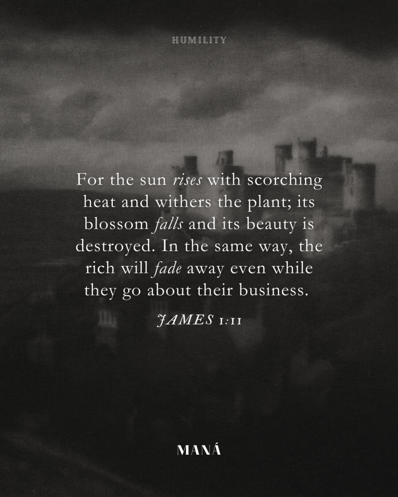 Believers in humble circumstances ought to take pride in their high position. But the rich should take pride in their humiliation—since they will pass away like a wild flower. For the sun rises with scorching heat and withers the plant; its blossom falls and its beauty is destroyed. In the same way, the rich will fade away even while they go about their business.