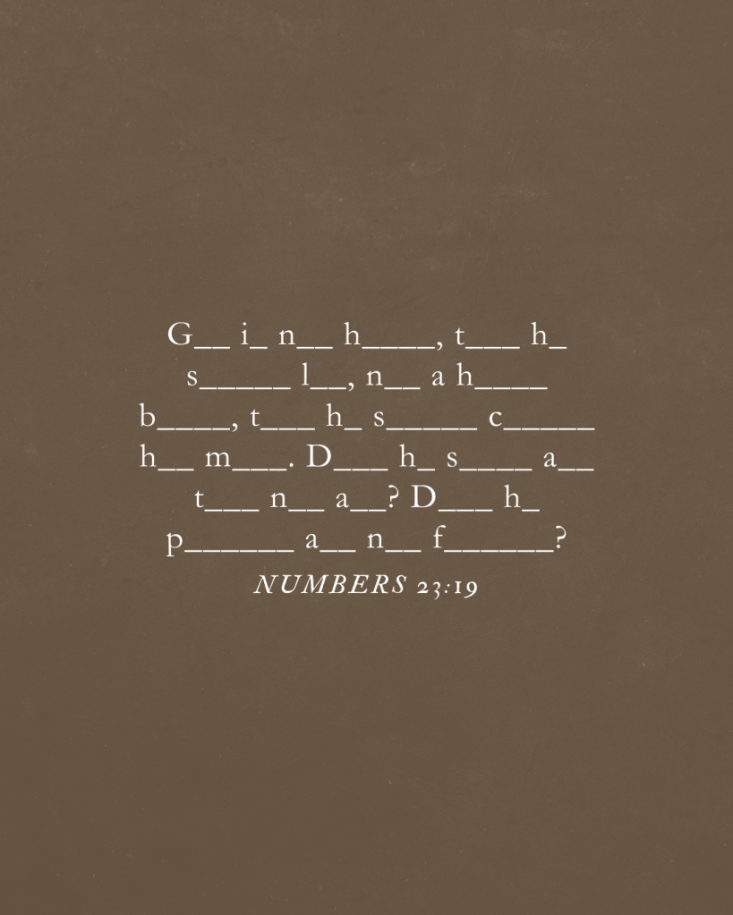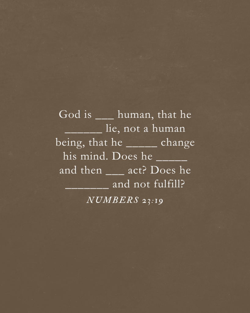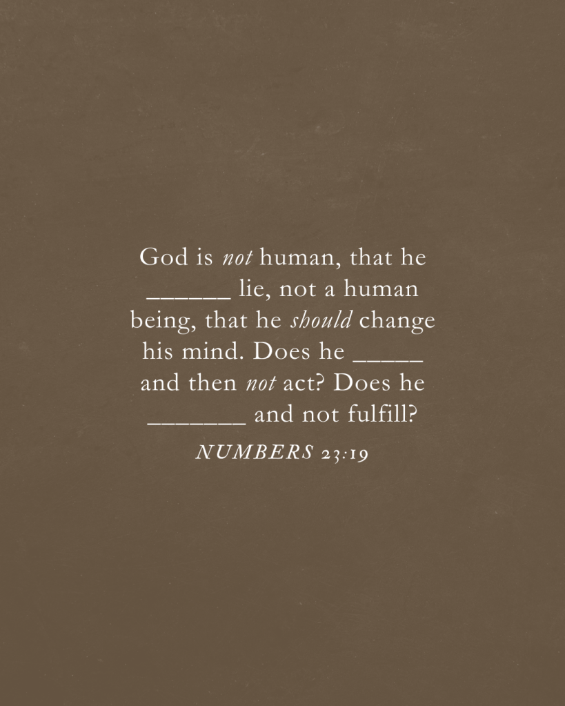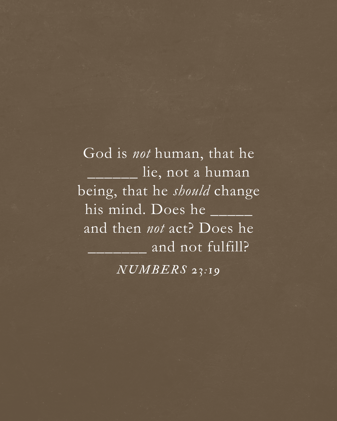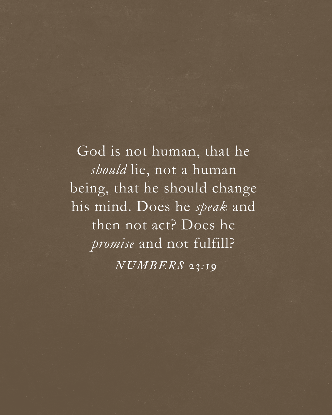 »Dios no es hombre, para que mienta, Ni hijo de hombre, para que se arrepienta. ¿Lo ha dicho Él, y no lo hará? ¿Ha hablado, y no lo cumplirá?