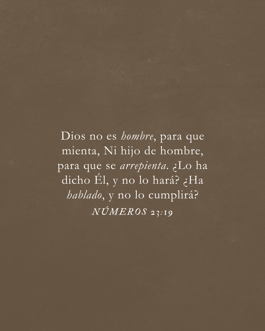 Deus não é homem, para que minta; nem filho de homem, para que se arrependa; porventura, diria ele e não o faria? Ou falaria e não o confirmaria?