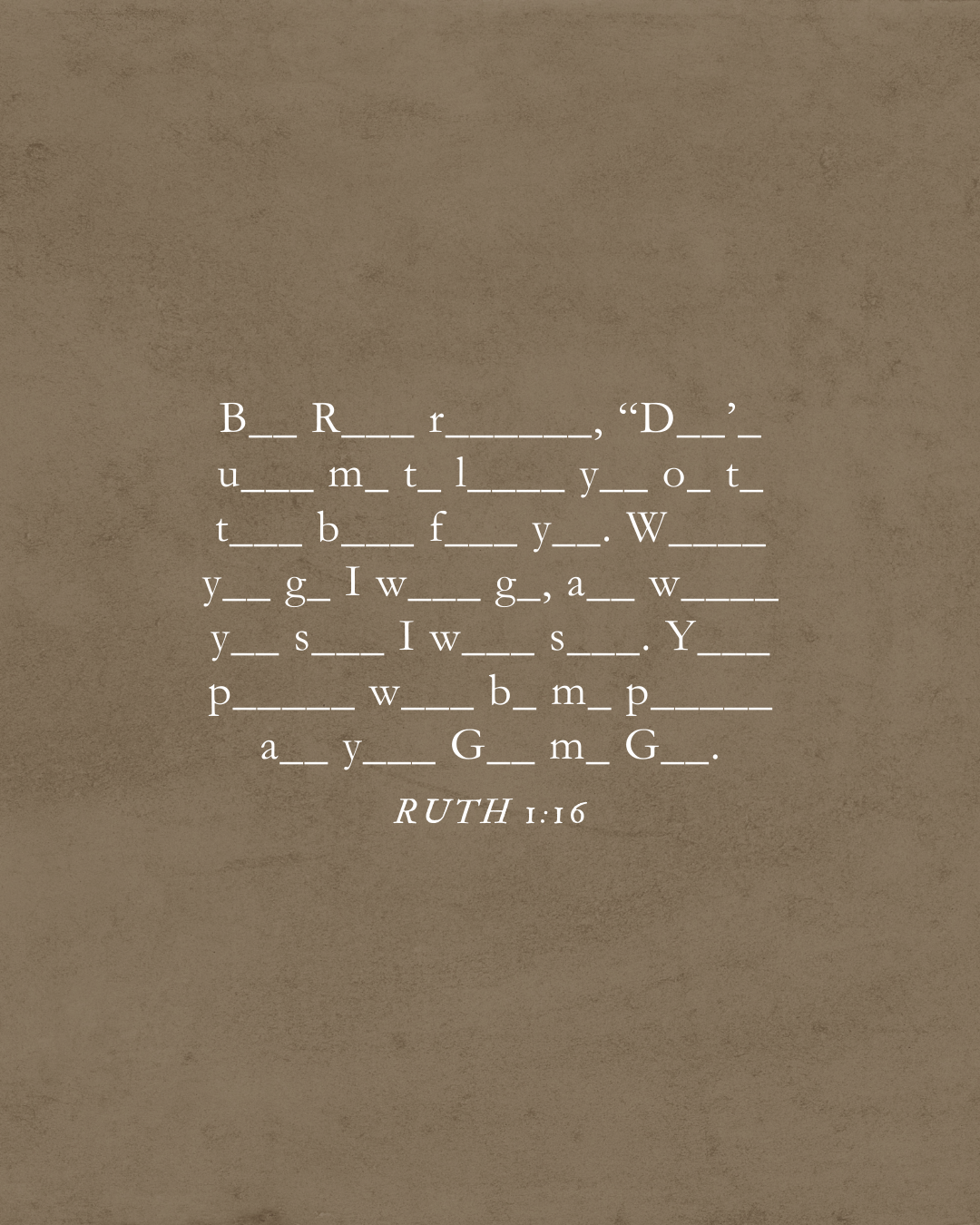 Pero Rut le respondió: «No insistas en que te deje o que deje de seguirte; porque adonde tú vayas, yo iré, y donde tú mores, moraré. Tu pueblo será mi pueblo, y tu Dios mi Dios.